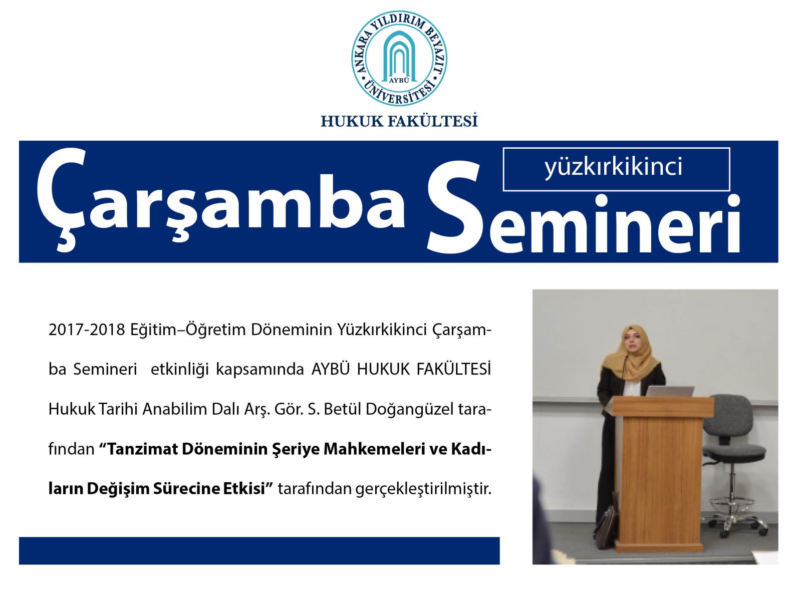 AYBÜ Hukuk Fakültesi Çarşamba Semineri 142–Tanzimat Döneminin Şeriye Mahkemeleri ve Kadıların Değişim Sürecine Etkisi Adlı Sunum Gerçekleştirildi.