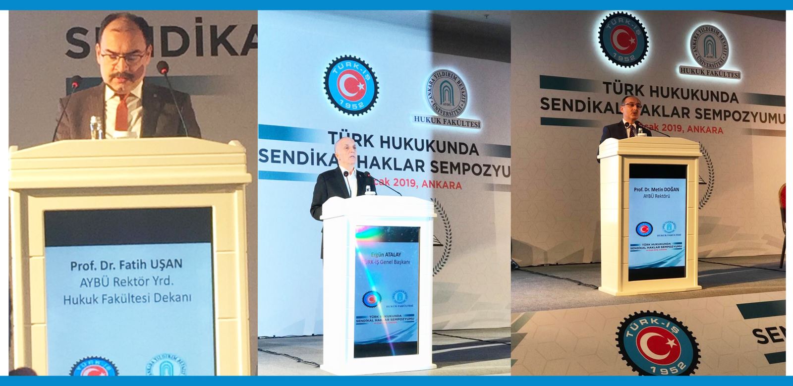 Ankara Yıldırım Beyazıt Üniversitesi Hukuk Fakültesi ve Türk-İş Konfederasyon ortaklığında 14 Ocak 2019 Pazartesi günü Anadolu Hotels Downtown’da “Türk Hukukunda Sendikal Haklar Sempozyumu” düzenlenmiştir.
