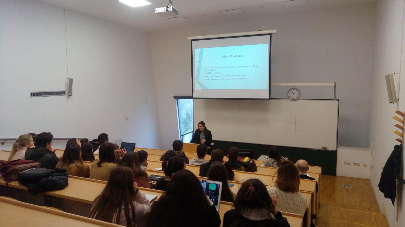 Fakültemiz Öğretim Görevlisi Dr. Hatice Kübra ECEMİŞ YILMAZ İspanya’daki Vigo Üniversitesi Hukuk Fakültesi – Milletlerarası Hukuk Bölümünün daveti üzerine 12 Kasım 2019 tarihinde “Analysis of the Aegean Sea and Eastern Mediterranean from the Perspective of Turkey with the Dimension of International Law and Law of the Sea” (Uluslararası Hukuk ve Deniz Hukuku Boyutuyla Ege Denizi ve Doğu Akdeniz’in Türkiye Perspektifinden Analizi) başlıklı konuyu Hukuk Fakültesinde ders olarak anlatmıştır.