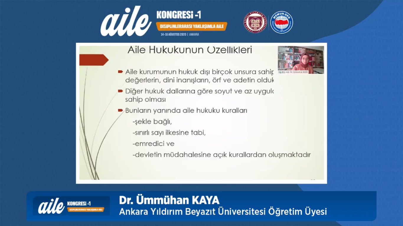 Fakültemiz Medeni Hukuk Anabilim dalı Araştırma Görevlisi Dr. Ümmühan Kaya 14-16 Ağustos 2020 tarihlerinde Ankara Sosyal Bilimler Üniversitesi ve Memursen’in birlikte düzenlediği Disiplinlerarası Yaklaşımla Aile Kongresi’nde ‘‘Toplumsal Değerlerin Türk Aile Hukuku’ndaki Yansımaları’’ başlıklı bir tebliğ sunmuştur.