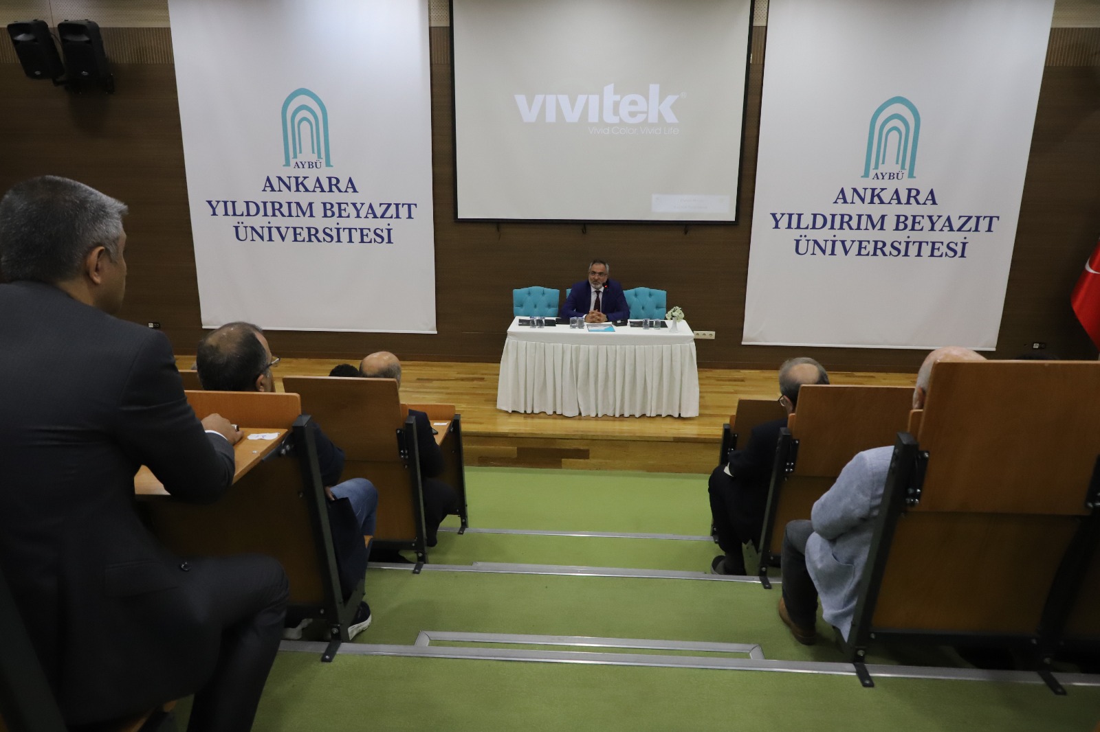 Rektörümüz Prof. Dr. Ali Cengiz KÖSEOĞLU, Üniversite çapında yapılmakta olan ve yakın zamanda başlayacak olan çalışmalara değindi. Kampüs camii inşaatının yakında başlayacağını belirtti. Öğrenci sosyal tesisinin hızla yapıldığını, önümüzdeki Eylül ayında faaliyete geçeceğini söyledi. İnternet alt yapısının güçlendirildiğini bildirdi. Kadrolarla ilgili Kasım ayında çalışma yapılacağını haber verdi. Bu sene projeler konusunda hamle yapmak istediklerini ifade etti. Yenimahalle Devlet Hastanesinin Tıp Fakültemizin eğitim ve araştırma hastanesi olması yönünde girişimlerin olduğunu belirtti. Esenboğa Kampüsüne bir Kütüphane binası, bir de Derslik binası kazandırılacağını, bütçe tahsisinin yapıldığını söyledi. Rektörümüz, öğretim üyelerinin sorularını dinleyip cevapladıktan sonra Kurul Toplantısından ayrıldı. Fakülte gündemi kısaca ele alındıktan sonra toplantı sona erdi.