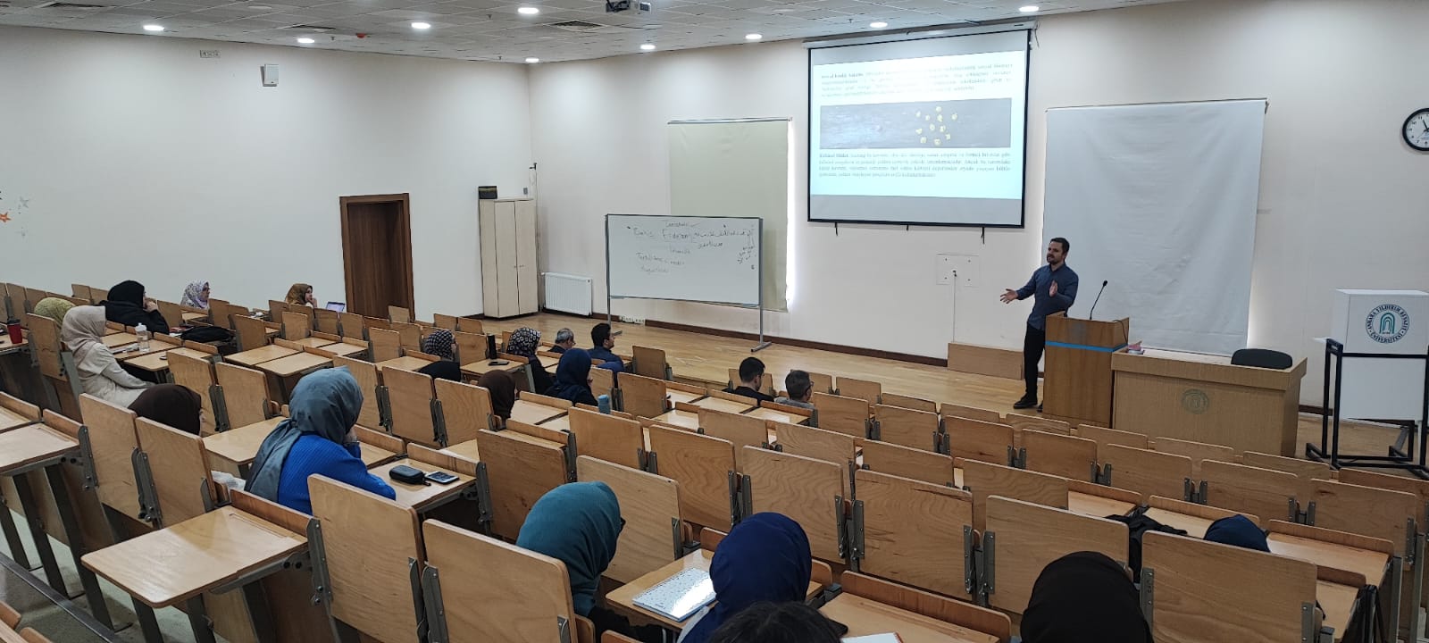 AYBÜ İlahiyat Fakülte Seminerleri kapsamında, 2 Ekim Çarşamba günü fakültemiz öğretim elemanı Dr. Mehmet Emin Sarıkaya, fakülte öğrencileri ve öğretim üyelerinin katılımıyla "Gruplararası İlişkiler Bağlamında Sosyal Kimlik ve Din" konulu sunumunu gerçekleştirdi.