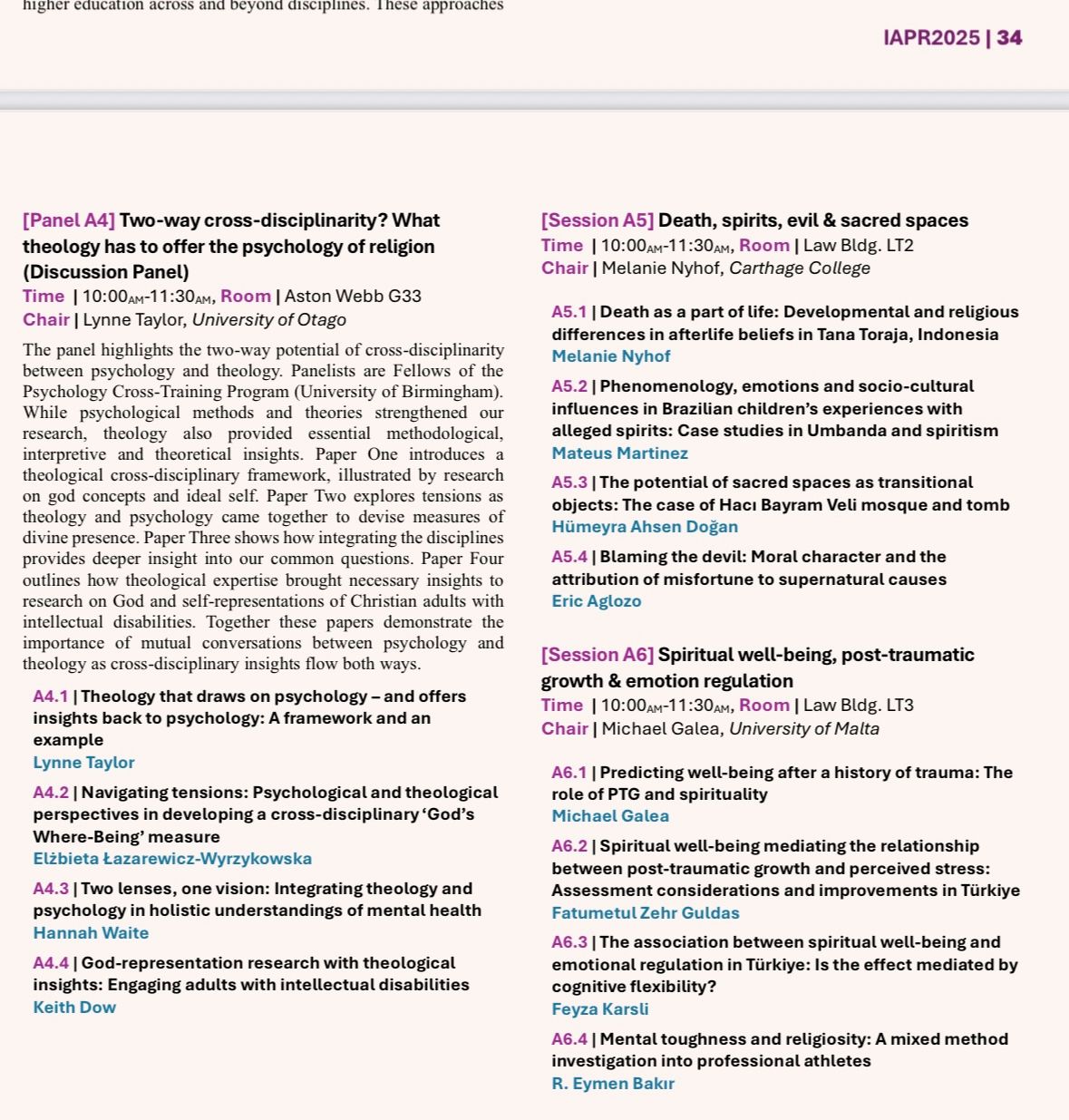 İlahiyat Fakültesi araştırma görevlilerimizden Hümeyra Ahsen Doğan, Birmingham Üniversitesi’nde düzenlenen International Association for the Psychology of Religion (IAPR) 2025 Konferansı’nda, “The Potential of Sacred Spaces As Transitional Objects: The Case of Hacı Bayram Veli Mosque and Tomb” başlıklı çalışmasını sundu.