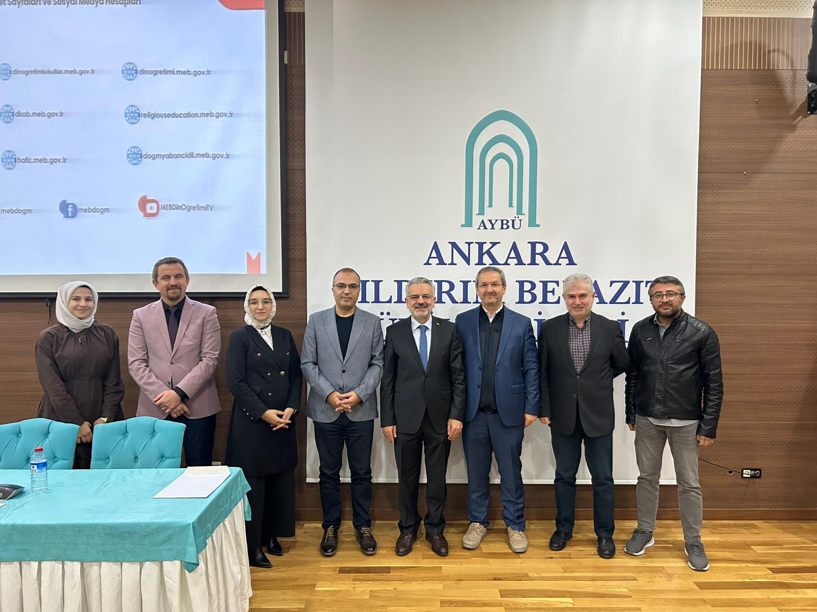 Milli Eğitim Bakanlığı, Din Öğretimi Genel Müdürlüğü, Öğretim Programları ve Materyalleri Daire Başkanı Hasan Özarslan ve Milli Eğitim Uzmanları Dr. Yusuf Ziya Öğretici ve Pınar Maltepe'nin katılımları ile gerçekleştirilen programda Daire Başkanı Hasan Özarslan tarafından Din Öğretimi Genel Müdürlüğü faaliyetleri, Milli Eğitim Akademisi süreçleri ve İlahiyat Fakültesi mezunlarına yönelik istihdam programları hakkında bilgi verildi.