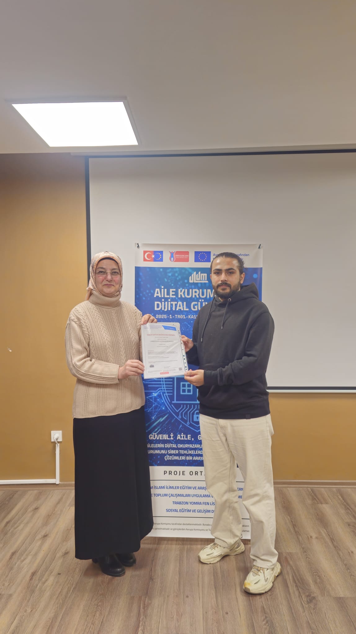 Proje kapsamında gerçekleştirilen etkinliklerle, gençlerde dijital farkındalığın artırılması, bilinçli ve etik medya kullanımının teşvik edilmesi ve aile ilişkileri ile toplumsal dayanışmanın güçlendirilmesi hedeflenmektedir. Etkinlik programına düzenli katılım sağlayan ve programı başarıyla tamamlayan katılımcılara, Türkiye Ulusal Ajansı ve Avrupa Birliği Komisyonu destekli proje kapsamında katılım sertifikası takdim edilmiştir. Sertifikalar, katılımcıların dijital güvenlik ve aile odaklı farkındalık eğitimlerine katılımını belgelemektedir.