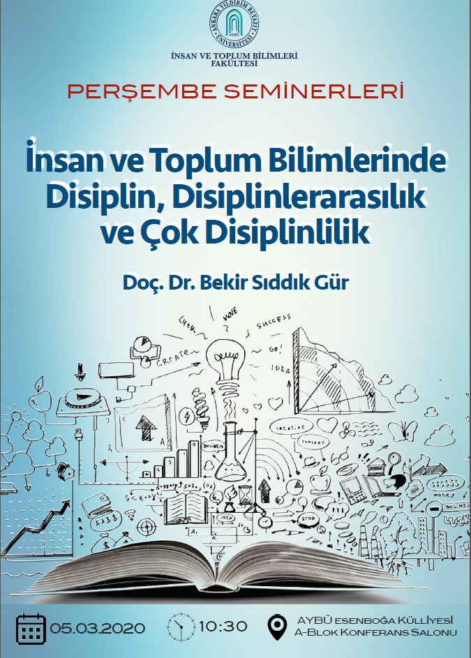 Daha önce "İTBF Kolokyumları" olarak duyurulan ve düzenli olarak her hafta gerçekleştirilmesi planlanan akademik etkinliğimiz "Perşembe Seminerleri" olarak, Fakültemiz, Medya ve İletişim Bölümü Öğretim Üyesi Doç. Dr. Bekir Sıddık GÜR'ün "İnsan ve Toplum Bilimlerinde Disiplin, Disiplinlerarasılık ve Çok Disiplinlilik" başlıklı konuşmasıyla, 05.03.2020 tarihinde başlayacaktır. Saat 10:30'da başlayacak olan programa Fakültemiz bünyesinde çalışan bütün akademik personelimiz, yüksek lisans ve doktora öğrencilerimiz davetlidir.