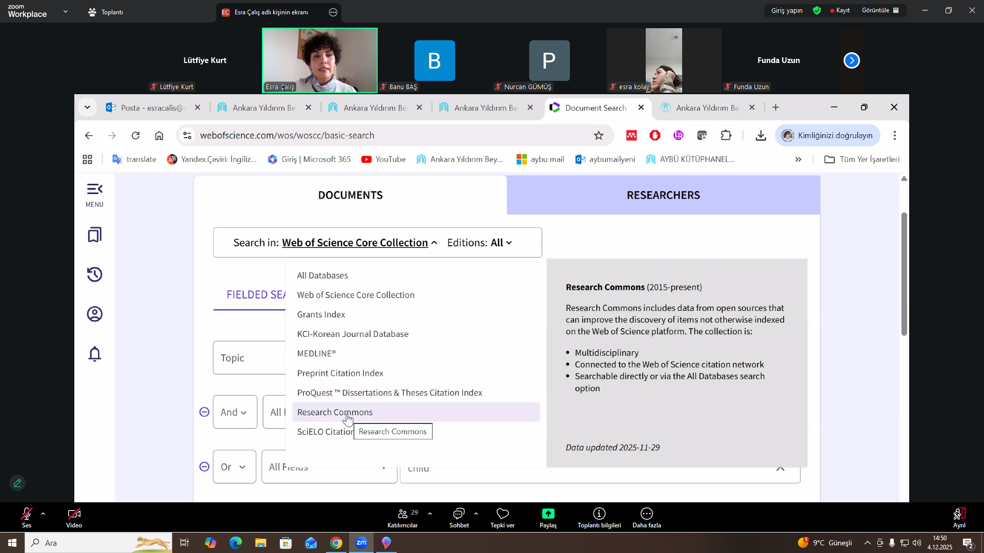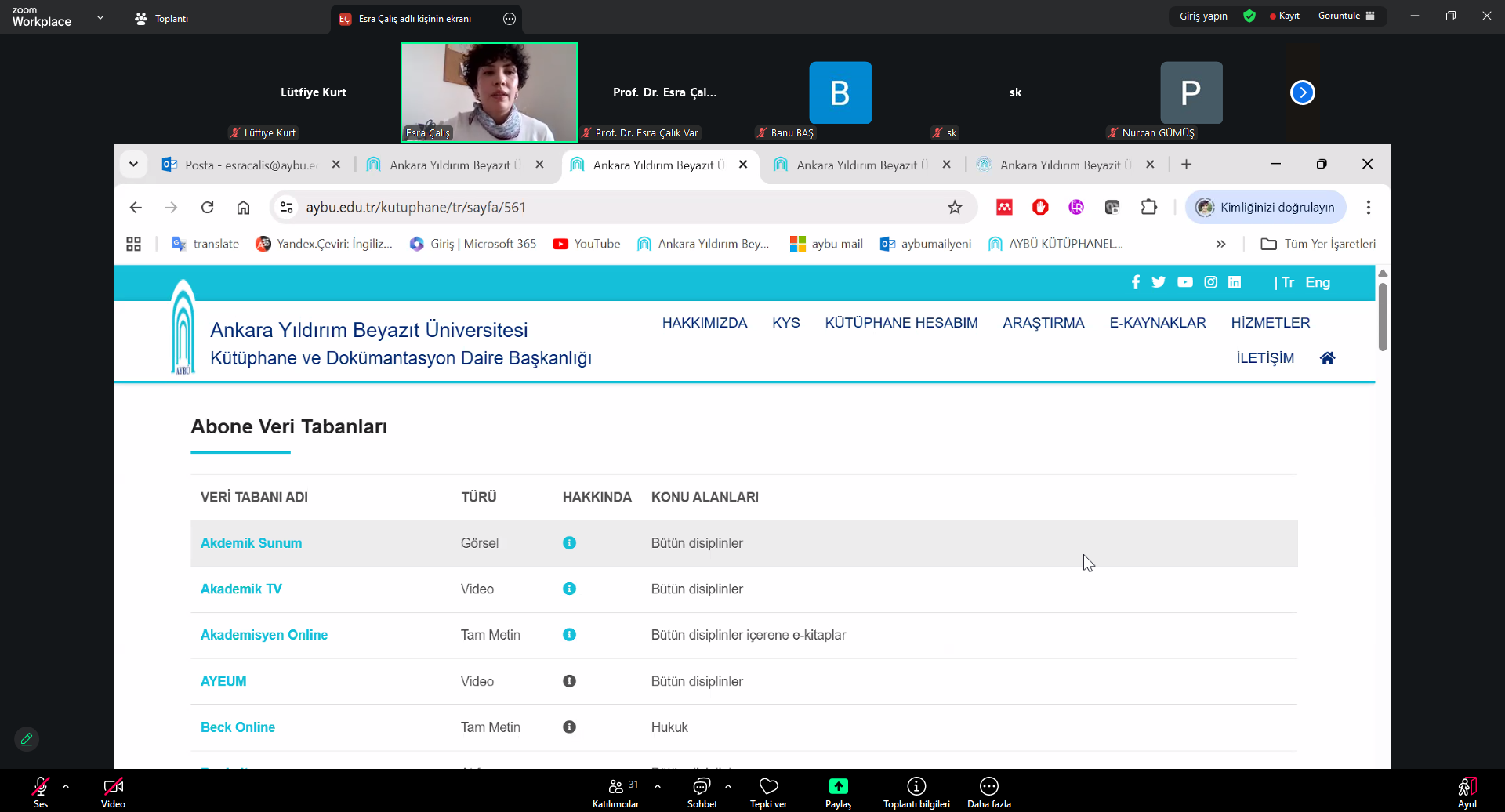 Sağlık Bilimleri Fakültesi öğretim elemanlarımıza kütüphanecimiz Esra ÇALIŞ tarafından İntihal Programları ile ilgili çevrim içi eğitim düzenlenmiştir.