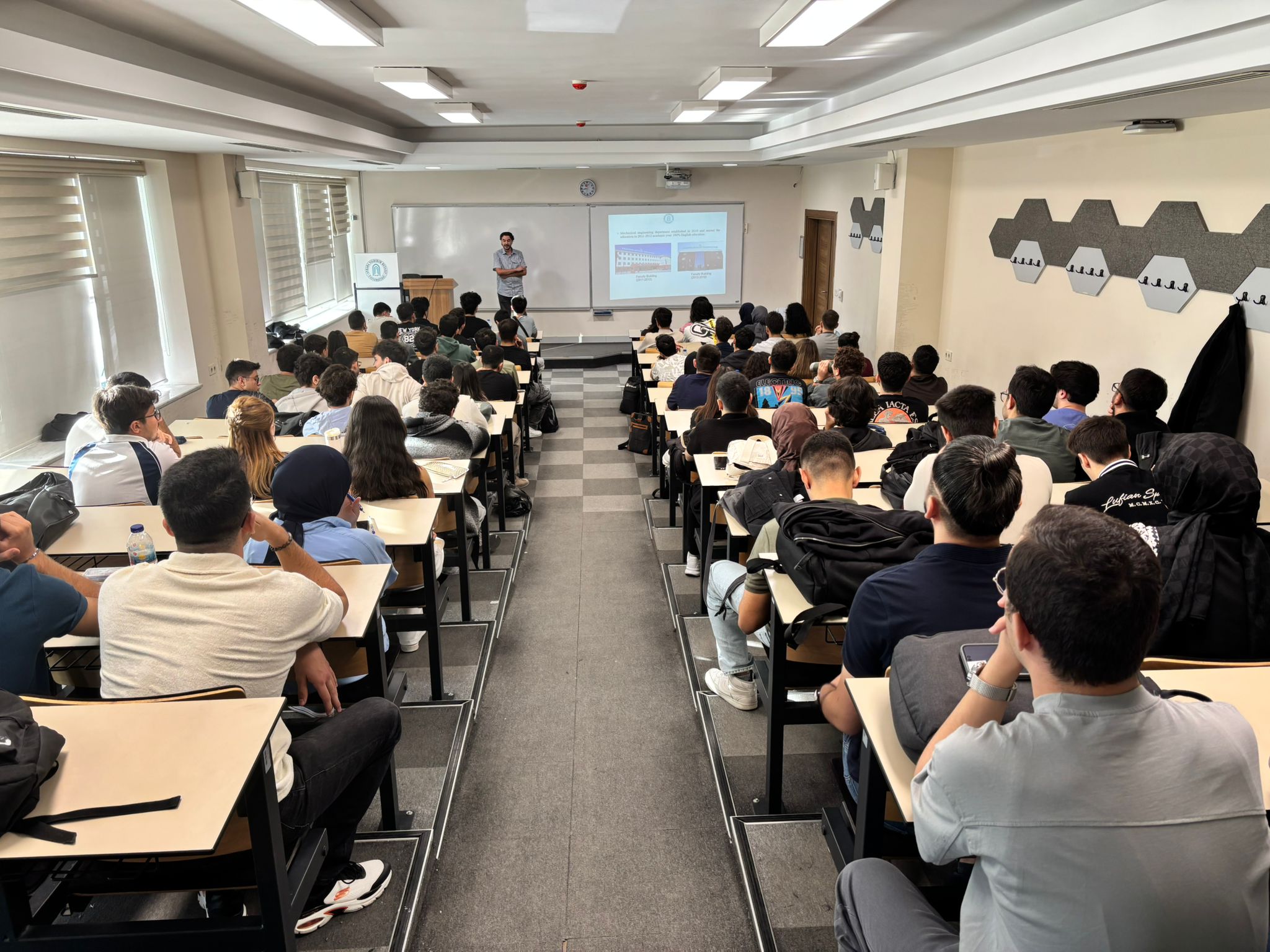 Bölümde görev yapan akademik kadro öğrencilere tanıtılarak, eğitim süresince danışmanlık ve rehberlik hizmetlerinin önemine değinildi. Ayrıca, bölümün sahip olduğu laboratuvar imkânları detaylı biçimde tanıtıldı. Mekanik laboratuvarlarından Tasarım ve imalat laboratuvarlarına, enerji laboratuvarlarından biyomekanik laboratuvarlarına kadar geniş bir altyapıya sahip olan bölümümüzün, öğrencilere uygulama becerisi kazandırmada güçlü bir rol üstlendiği ifade edildi.