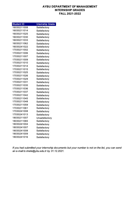 Internship Evaluation Results