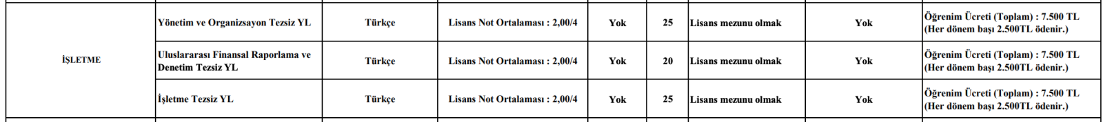 Üniversitemize 2018-2019 Bahar Döneminde aşağıda yer alan alanlarda öğrenci alımı yapılacaktır.