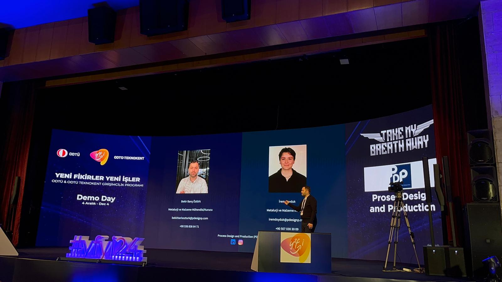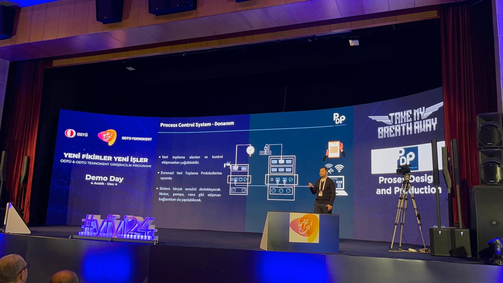 Our department's students, İrem Doyduk and Bekir Barış Öztürk, have made it to the top 24 finalists out of 200 ventures in the "New Ideas, New Businesses" entrepreneurship program jointly organized by METU and METU TEKNOKENT. Their project focuses on enhancing data collection and control processes for industrial automation through increased efficiency and AI integration. They delivered their final presentation on December 4, 2024. We congratulate them on their success and wish them many more achievements in the future.