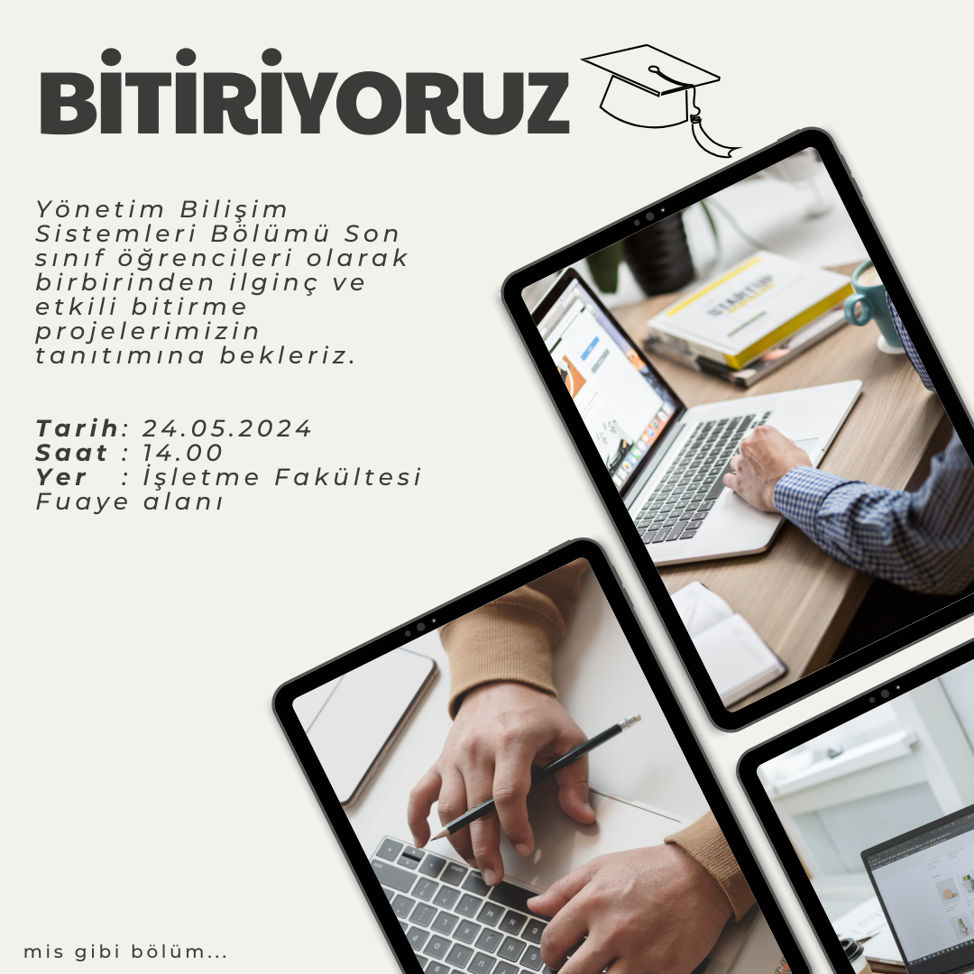 Yönetim Bilişim Sistemleri Bölümü Son sınıf öğrencileri olarak birbirinden ilginç ve etkili bitirme projelerimizin tanıtımına bekleriz.