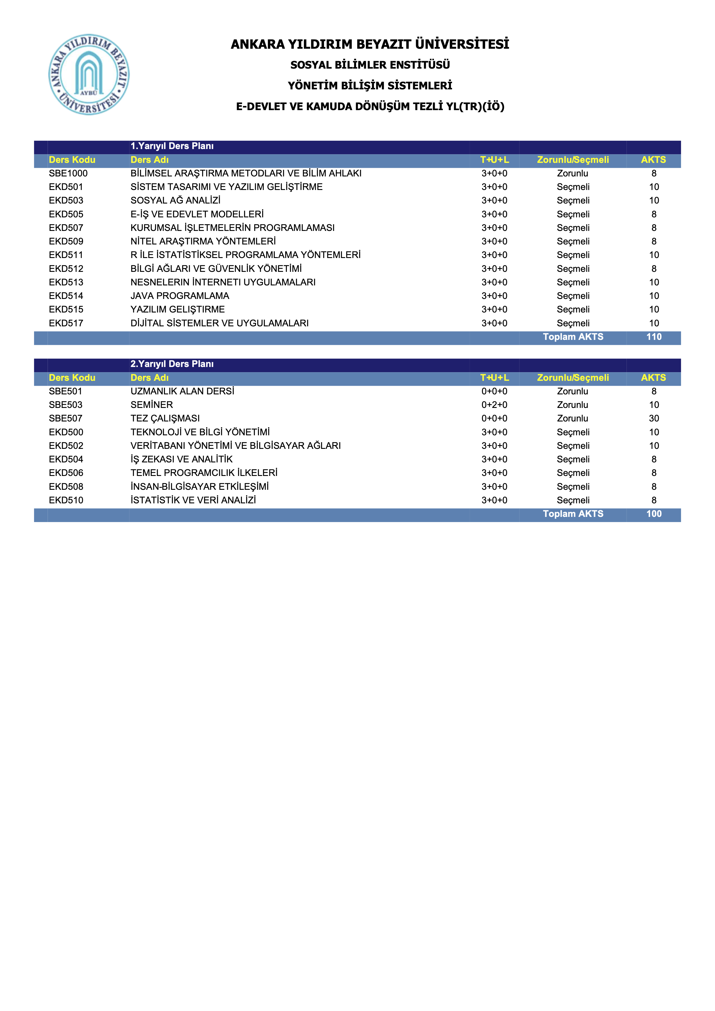 E-Devlet ve Kamuda Dönüşüm Tezli Yüksek Lisans