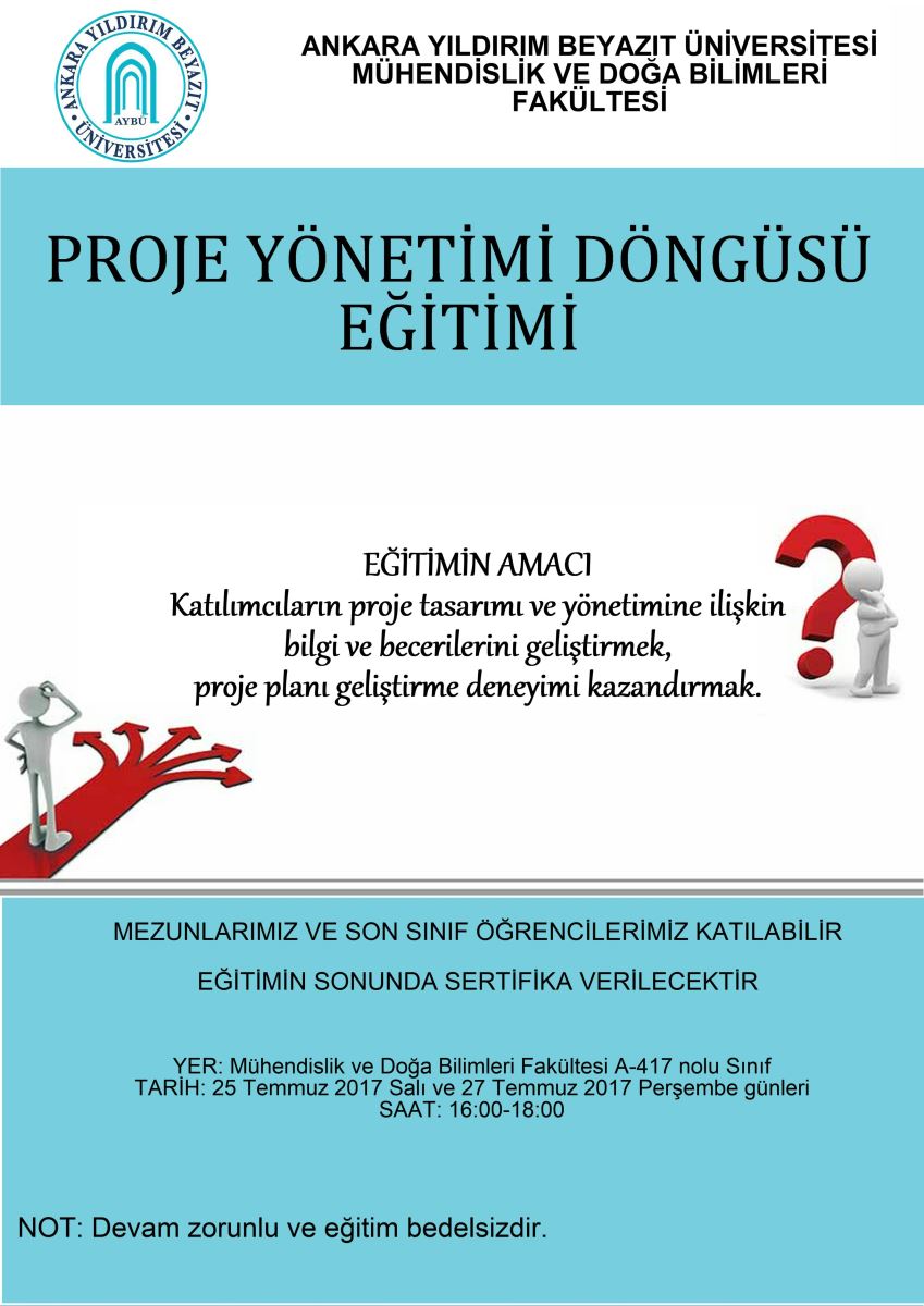 Mezun ve son sınıf öğrencilerimize yönelik Proje Yönetimi Döngüsü Eğitimi verilecektir.