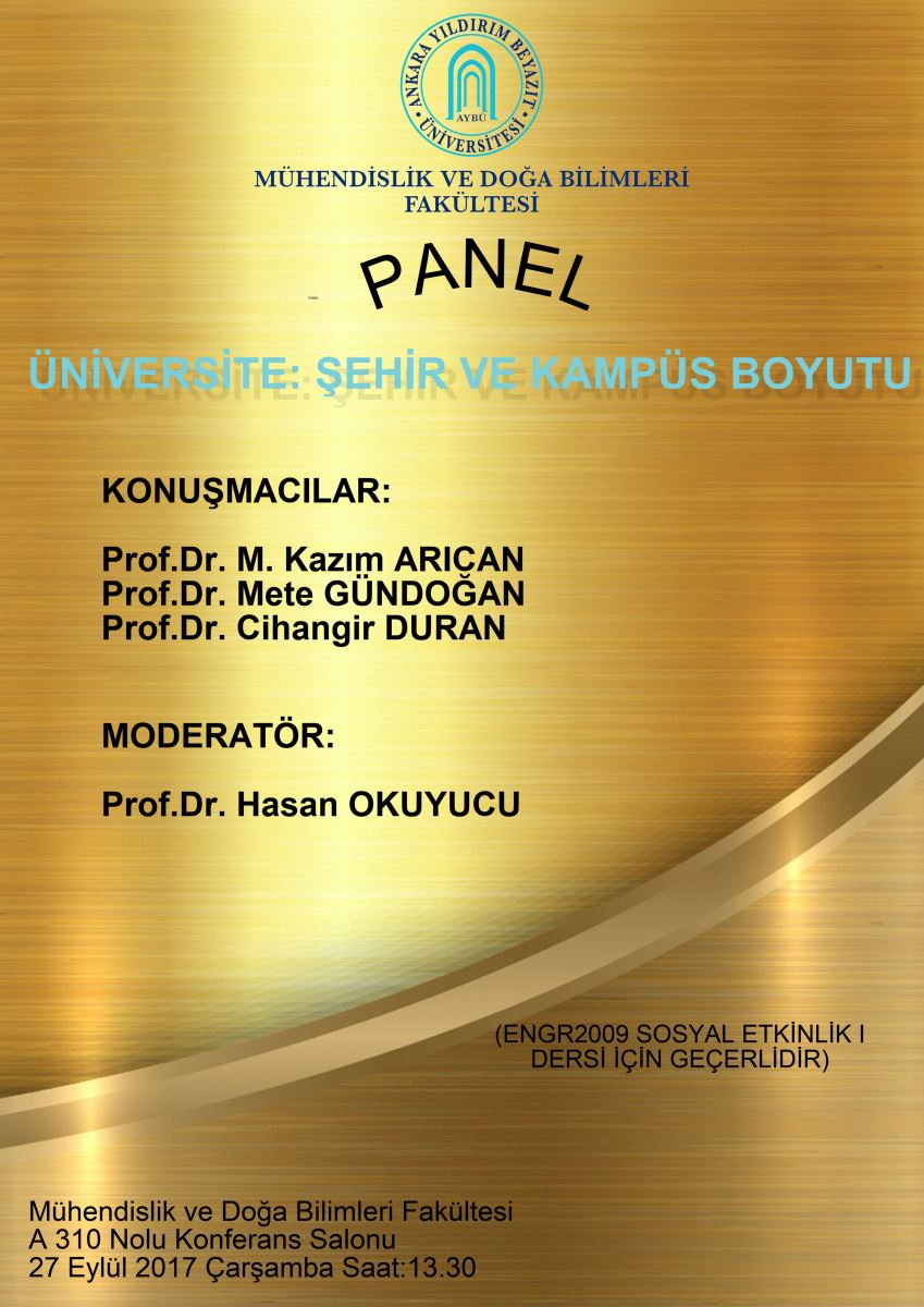SOCIAL ACTIVITIES I (Sosyal Etkinlik I) dersi kapsamında 27.09.2017 tarih çarşamba 13.30-15:30 saatleri arasında yapılacak PANEL'e Sosyal Etkinlik I dersini alan ve PANEL'E Katılmak isteyen tüm öğrenciler katılabilir.