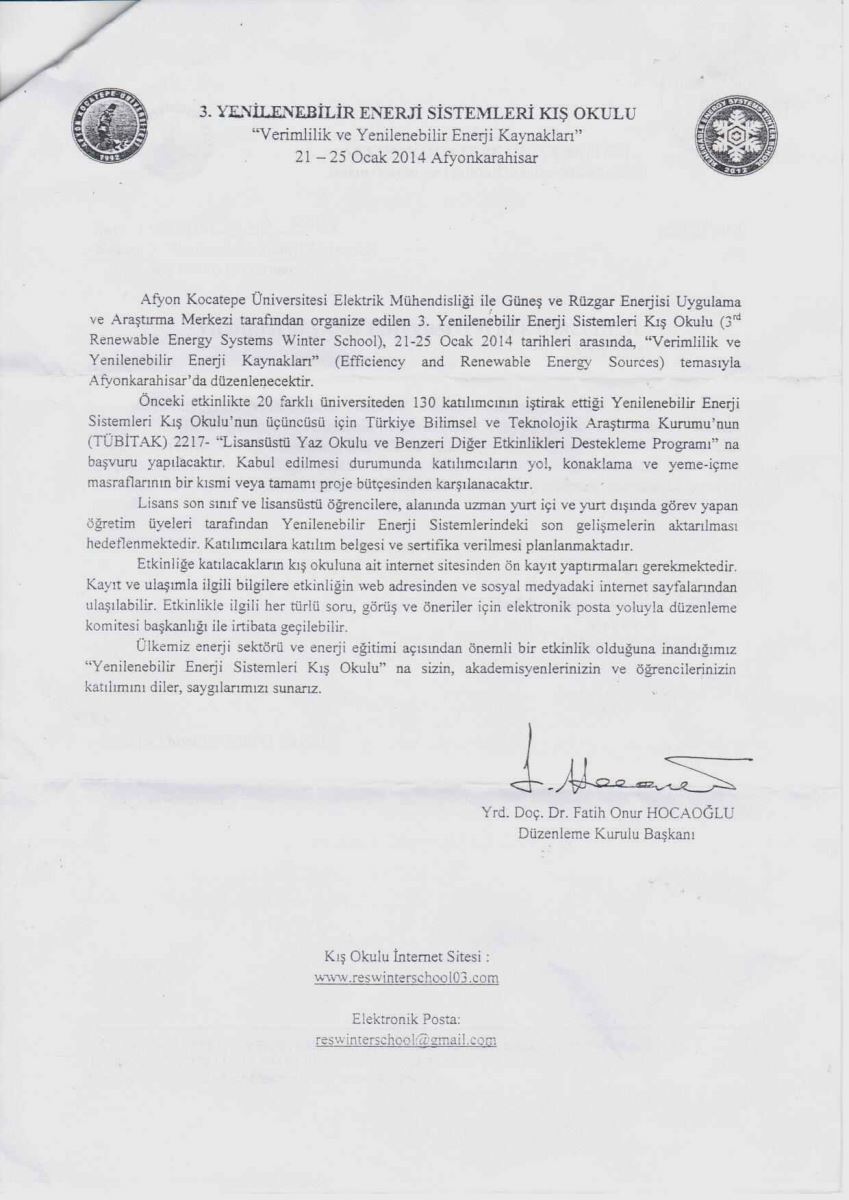 3. Yenilenebilir Enerji Sistemleri Kış Okulu
