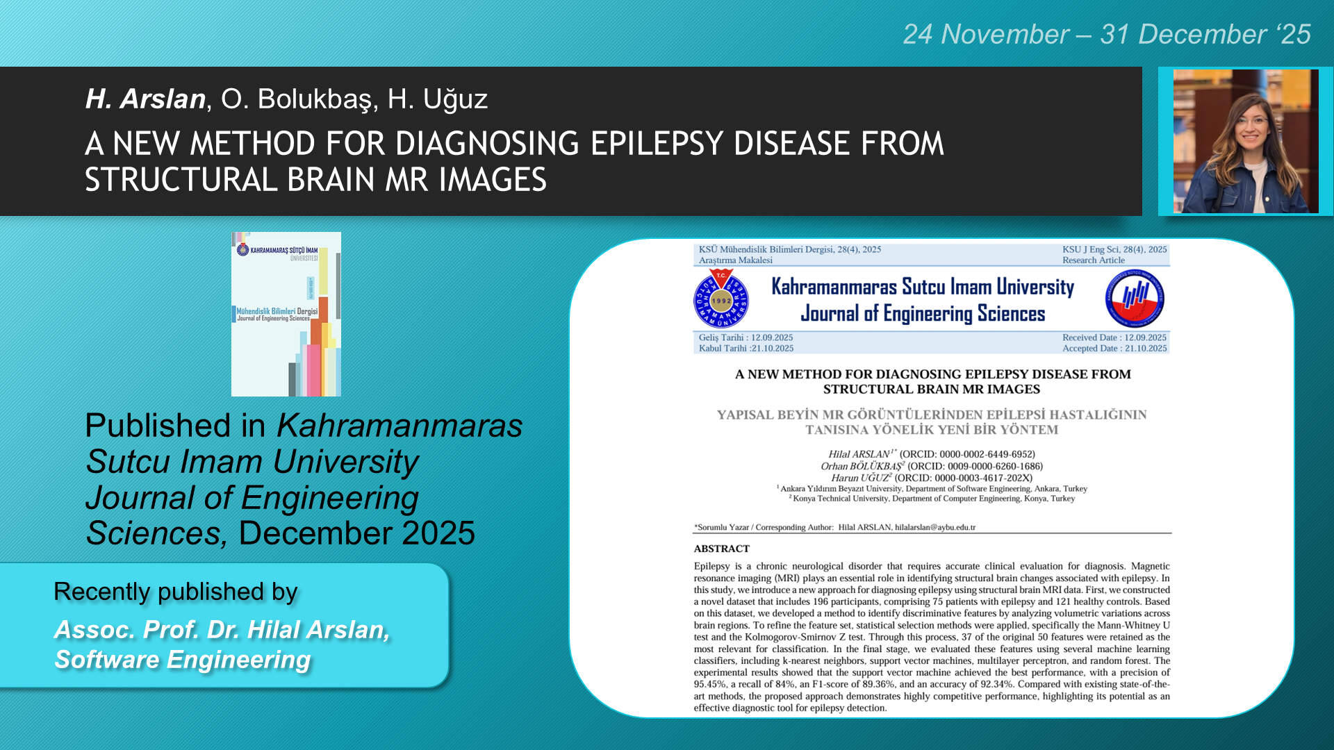Diagnostics, Cilt 15, Sayı 23 A NEW METHOD FOR DIAGNOSING EPILEPSY DISEASE FROM STRUCTURAL BRAIN MR IMAGES H. Arslan and O. Bolukbaş and H. Uğuz