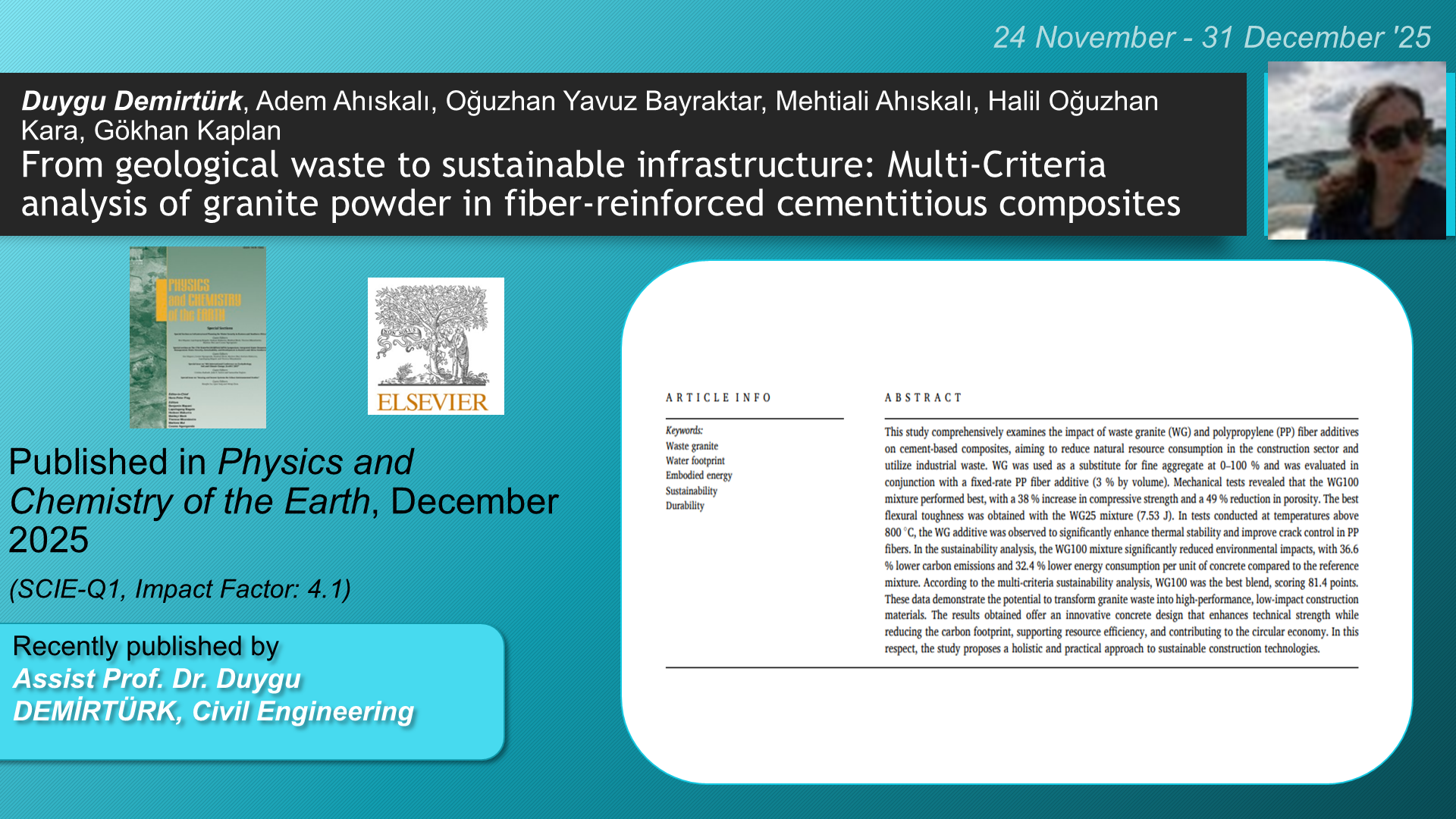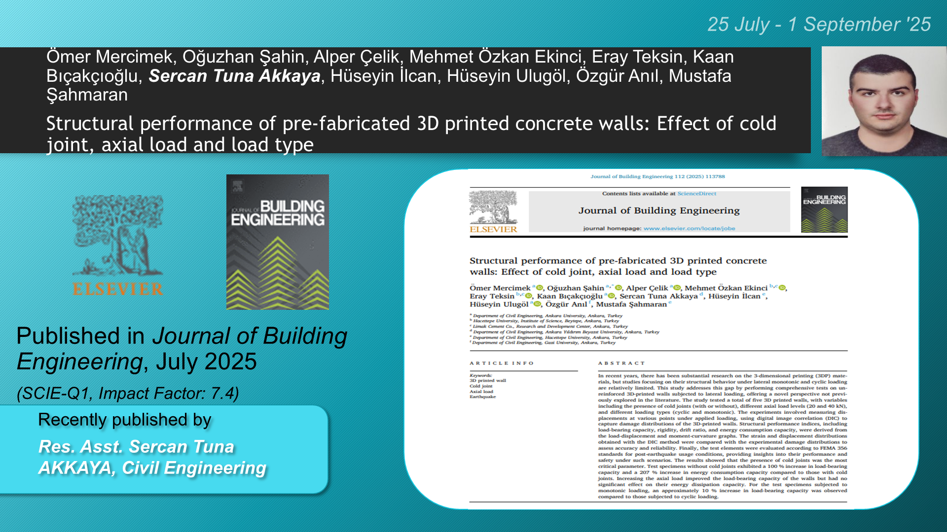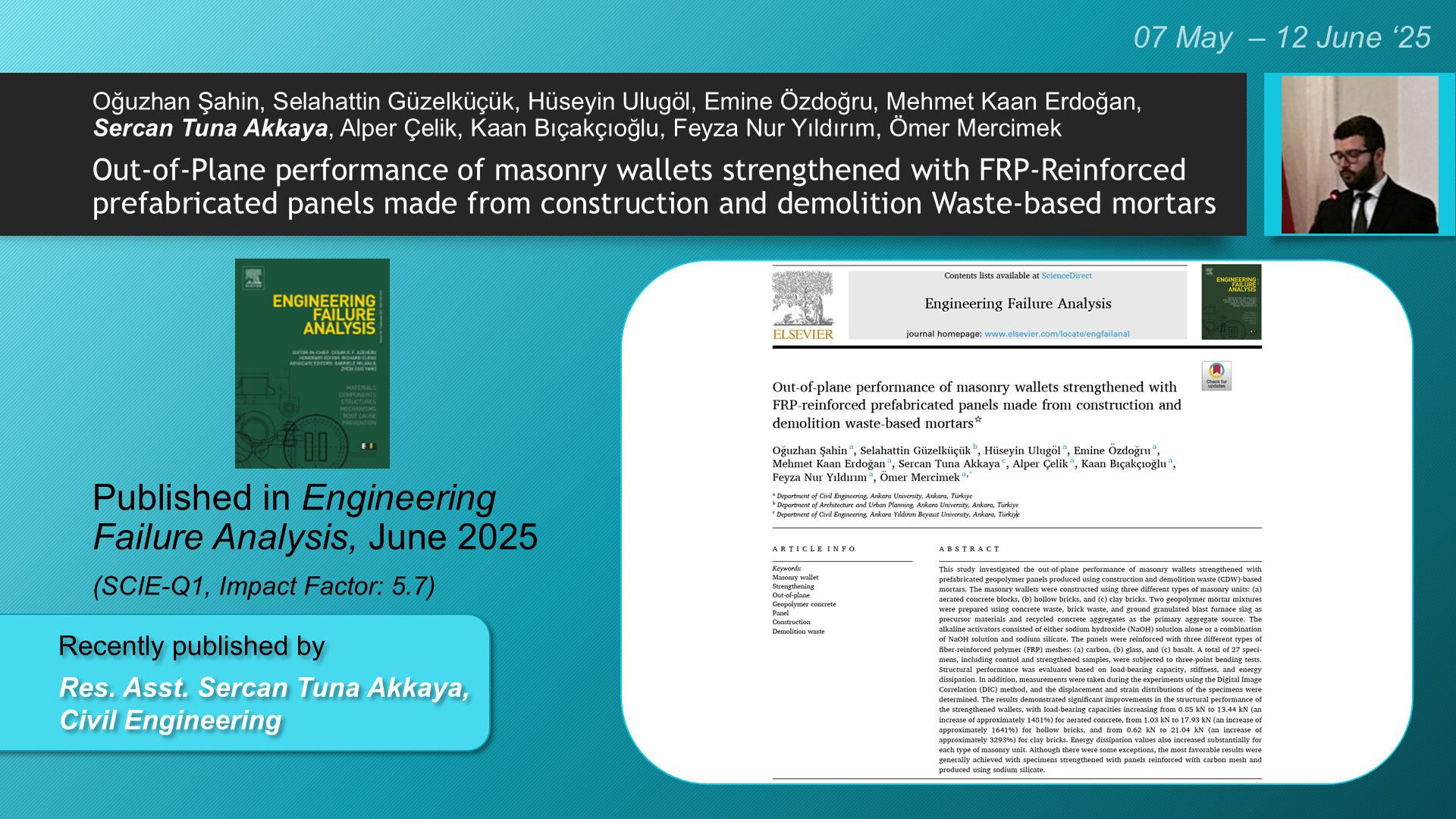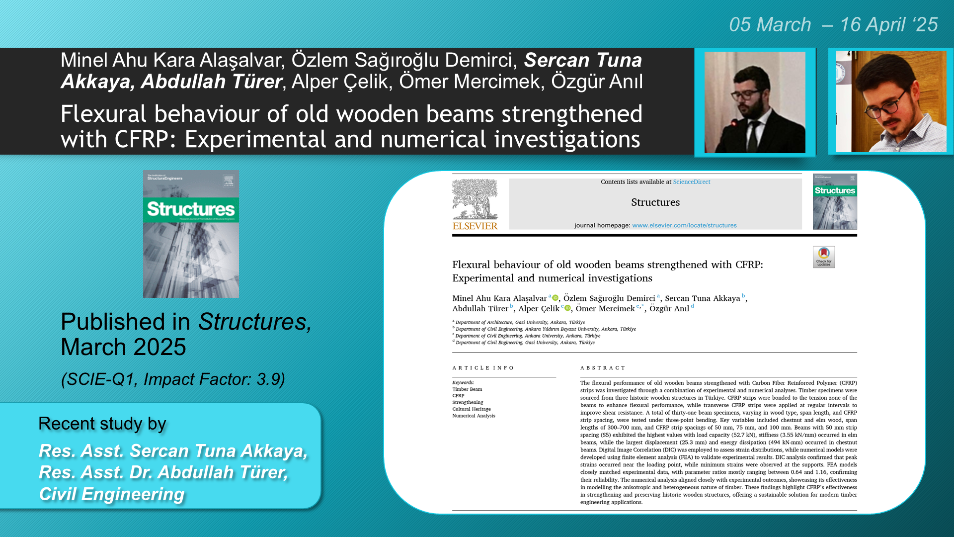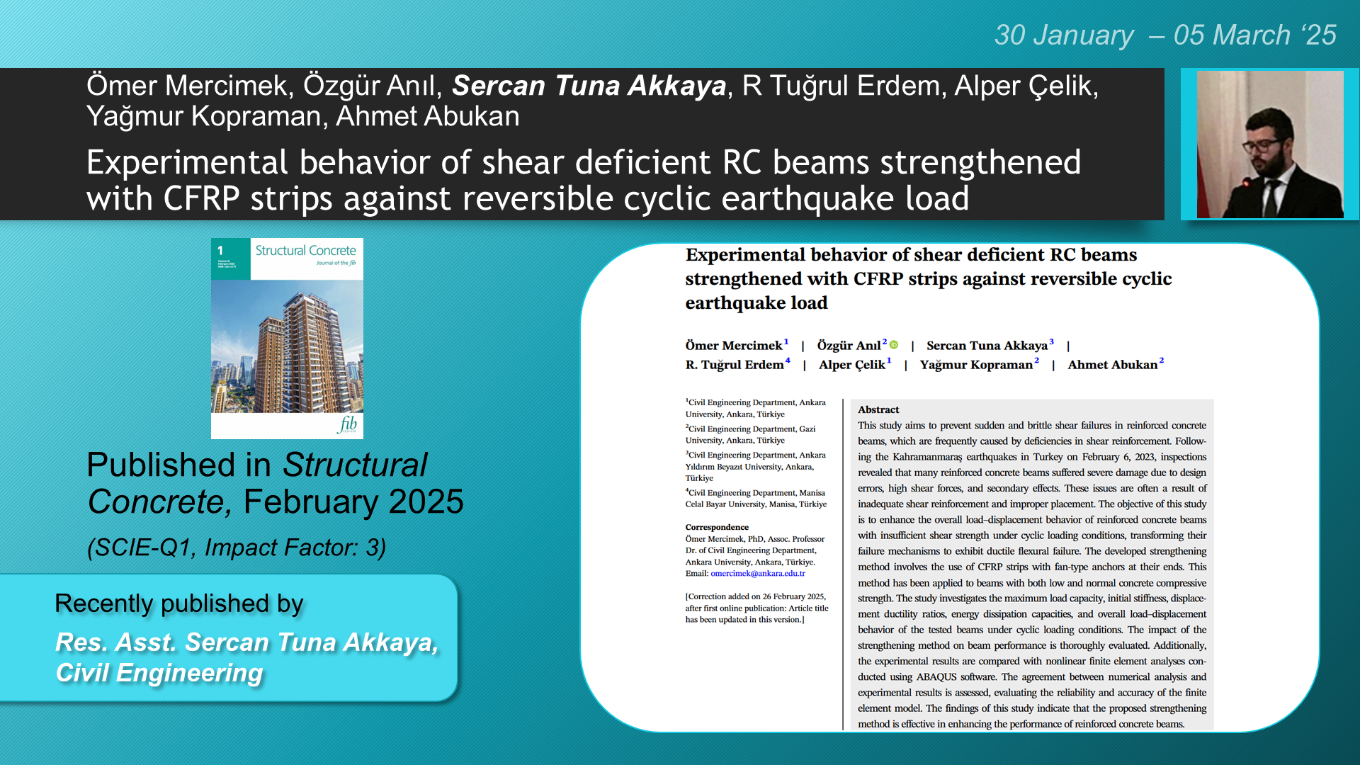 Construction and Building Materials, Cilt 458, Sayfalar 139595 Innovative solutions on ductility and bearing capacity: Strengthening flexural performance of reinforced concrete beams with recycled face mask fibers Anil Ozdemir and Baran Bozyigit and Rüya Kılıç Demircan and Ömer Mercimek and Damla Nur Çelik and Sercan Tuna Akkaya and Gökhan Kaplan