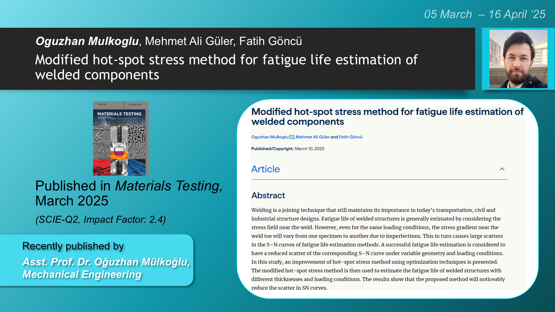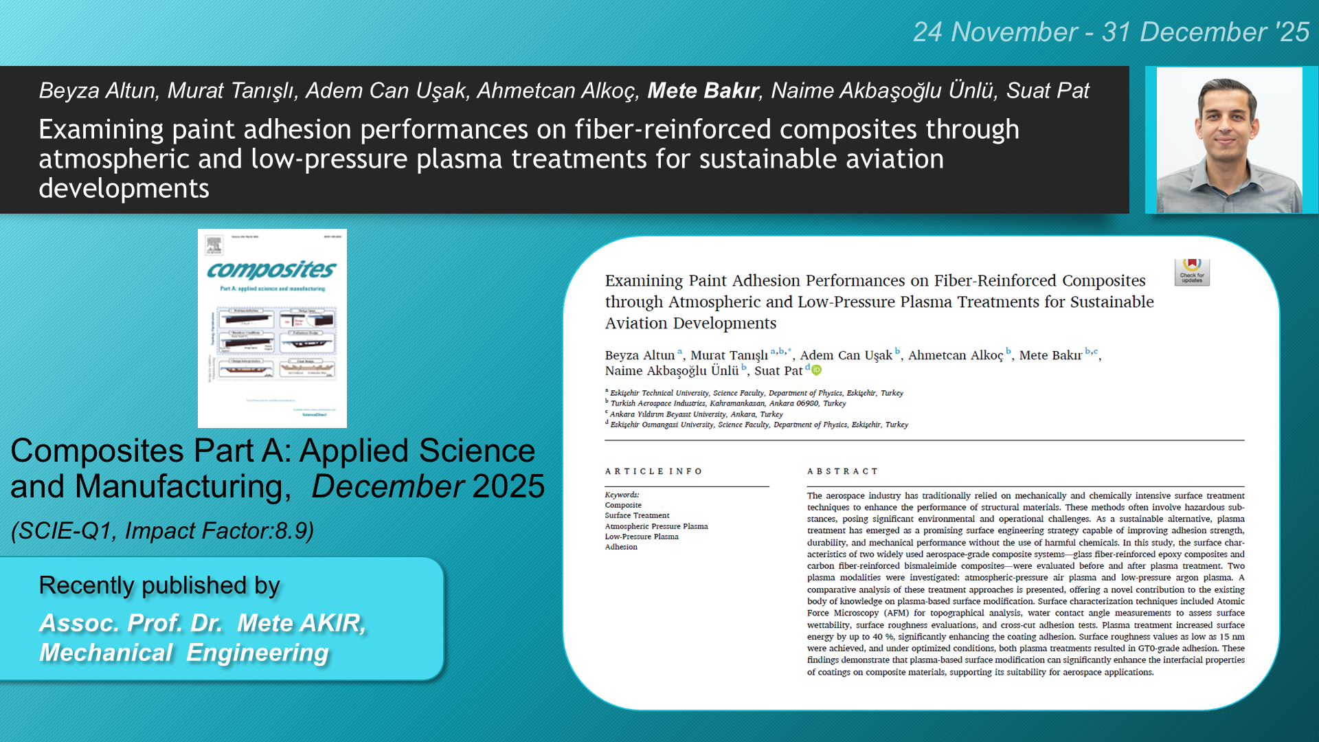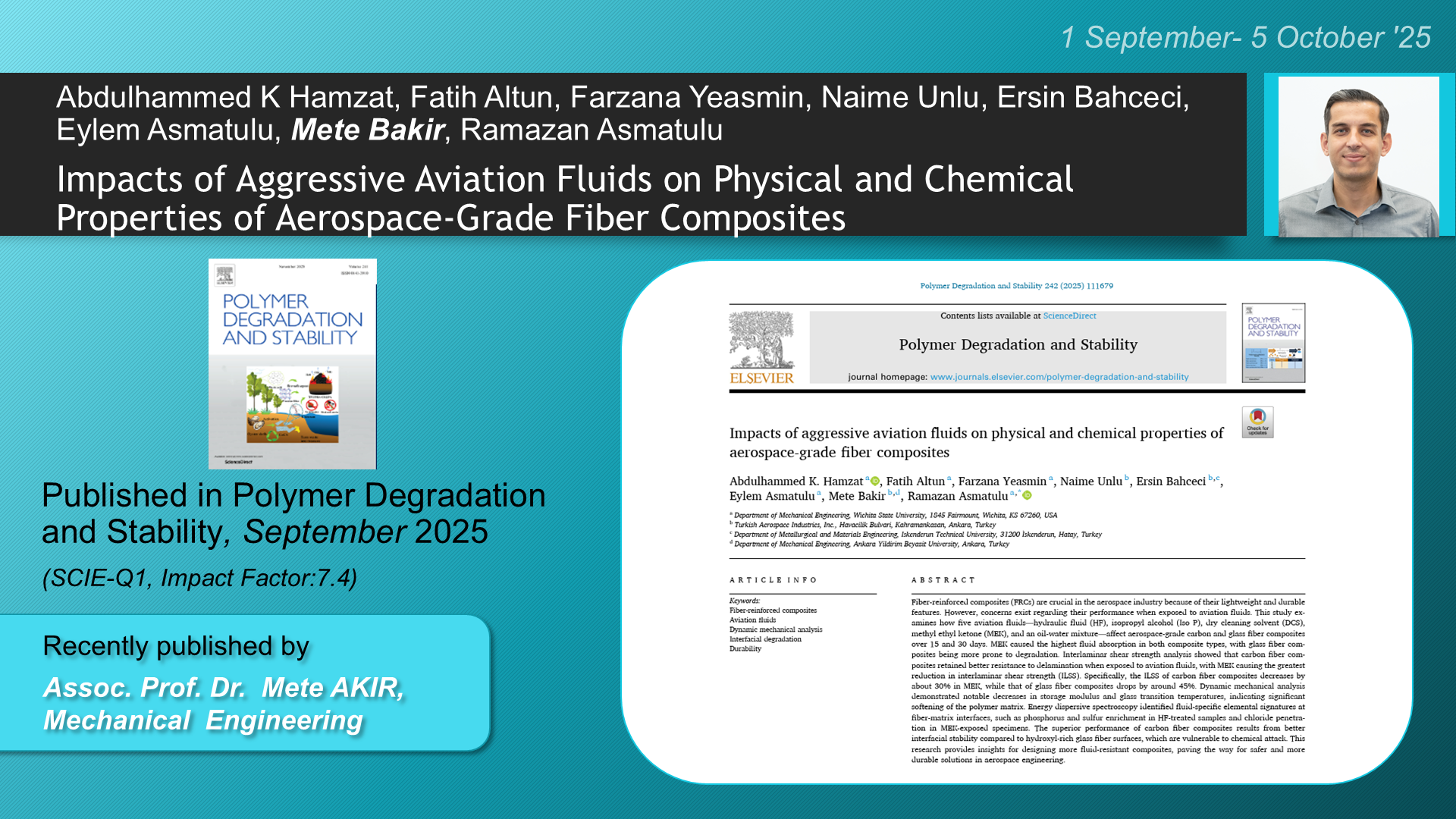 Available at SSRN 5317344 Investigating corrosion properties of aluminum alloys in various saltwater solutions via electrochemical analysis Md Shafinur Murad and Chiranjeet Hira and Abdulhammed K Hamzat and Ersin Bahceci and Eylem Asmatulu and Mete Bakir and Ramazan Asmatulu Investigating mechanical behaviours of fire-retardant fiber composites in aggressive aviation fluids Abdulhammed K Hamzat and Md Shafinur Murad and Eylem Asmatulu and Ersin Bahceci and Mete Bakir and Ramazan Asmatulu Investigation of optical and mechanical properties of gold-coated polycarbonate and cast acrylic transparent composites for aerospace applications Enes Makaraci and Farzana Yeasmin and Purva Todmal and Ali Gungor and Eylem Asmatulu and Halil Burak Kaybal and Ersin Bahceci and Mete Bakir and Ramazan Asmatulu Bayesian inference based high cycle fatigue modeling of forged 7050-T7452 aluminum Alloy: Effects of surface treatments and defects Halil İbrahim Filiz and Çağlayan Aras and Mete Bakır and Hakan Ateş