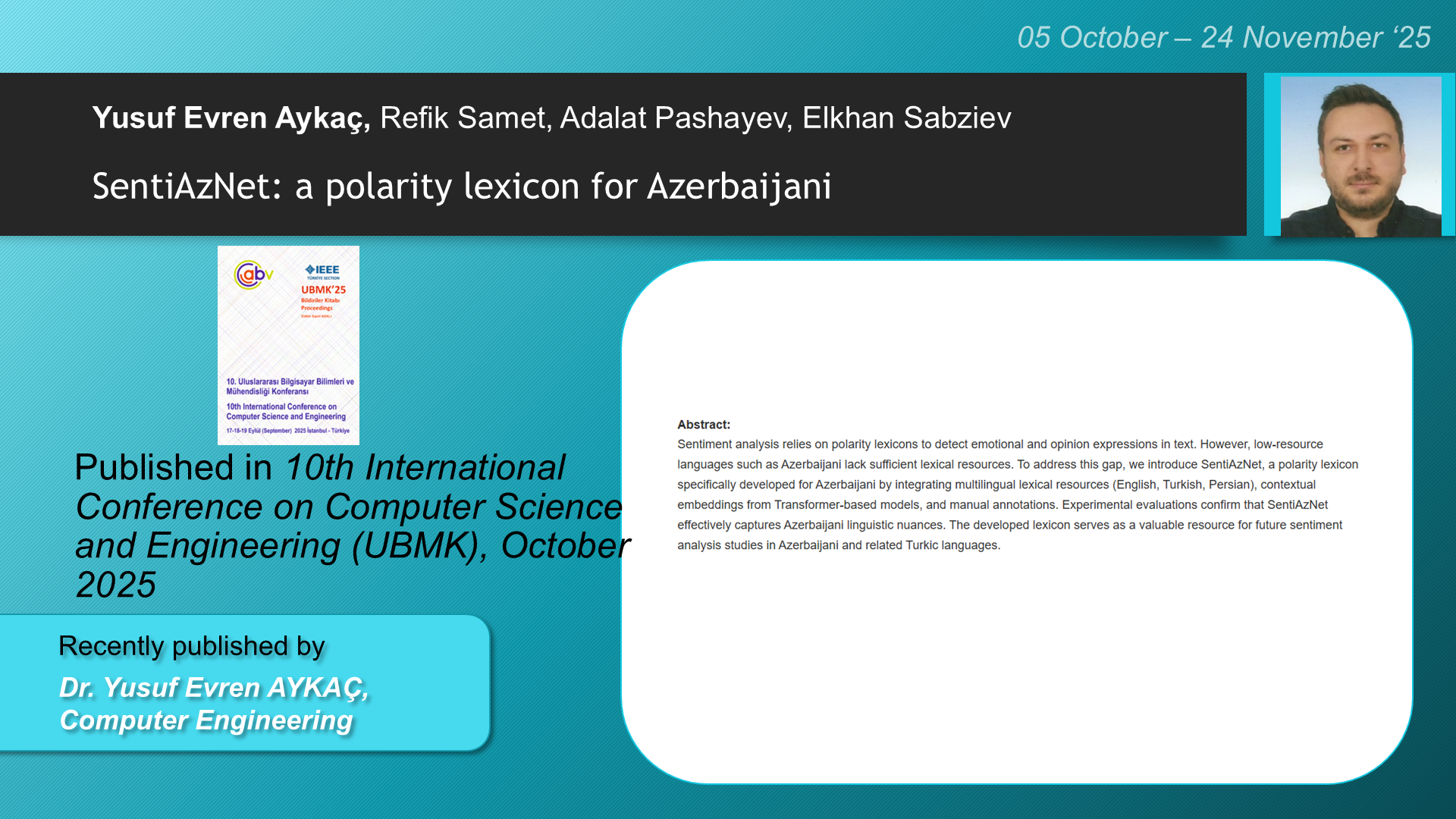 1st International Turkic World Conference on the Ethics of Artificial Intelligence Hybrid Hyperspectral Anomaly Detection via Robust Subspace Recovery and Laplacian Cauchy-Based Methods Ufuk Kaya and Behçet Uğur Töreyin and Fatma Küçük SentiAzNet: a polarity lexicon for Azerbaijani Yusuf Evren Aykaç and Refik Samet and Adalat Pashayev and Elkhan Sabziev