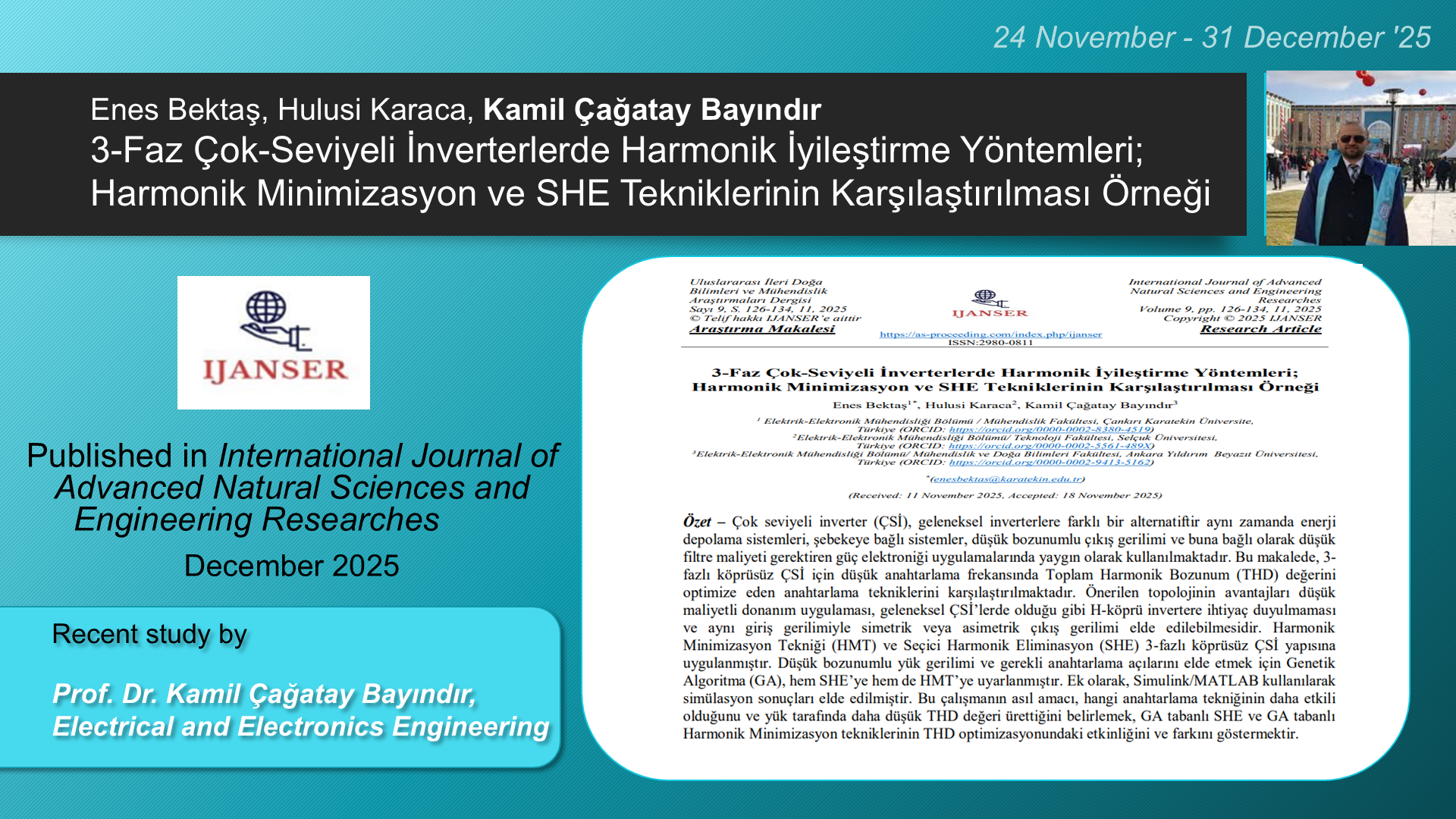 Scientific Journal for Publishing in Health Research and Technology, Sayfalar 74-85 Performance of a Polarization Converter for 6G Applications BERKAY İNCE and Kayrahan Koçyiğit and BERAT AYTAÇ and ASAF BEHZAT ŞAHİN and Hakan Altan 3-Faz Çok-Seviyeli İnverterlerde Harmonik İyileştirme Yöntemleri; Harmonik Minimizasyon ve SHE Tekniklerinin Karşılaştırılması Örneği Enes Bektaş and Hulusi Karaca and Kamil Çağatay Bayındır Deep Neural Network-Based Power Factor and Phase Angle Estimation for Real-Time Monitoring Abdullah Çalışkan and Mustafa İnci and Mehmet Hakan Demir and Ömer Berber and Adnan Tan and Kamil Çağatay Bayındır