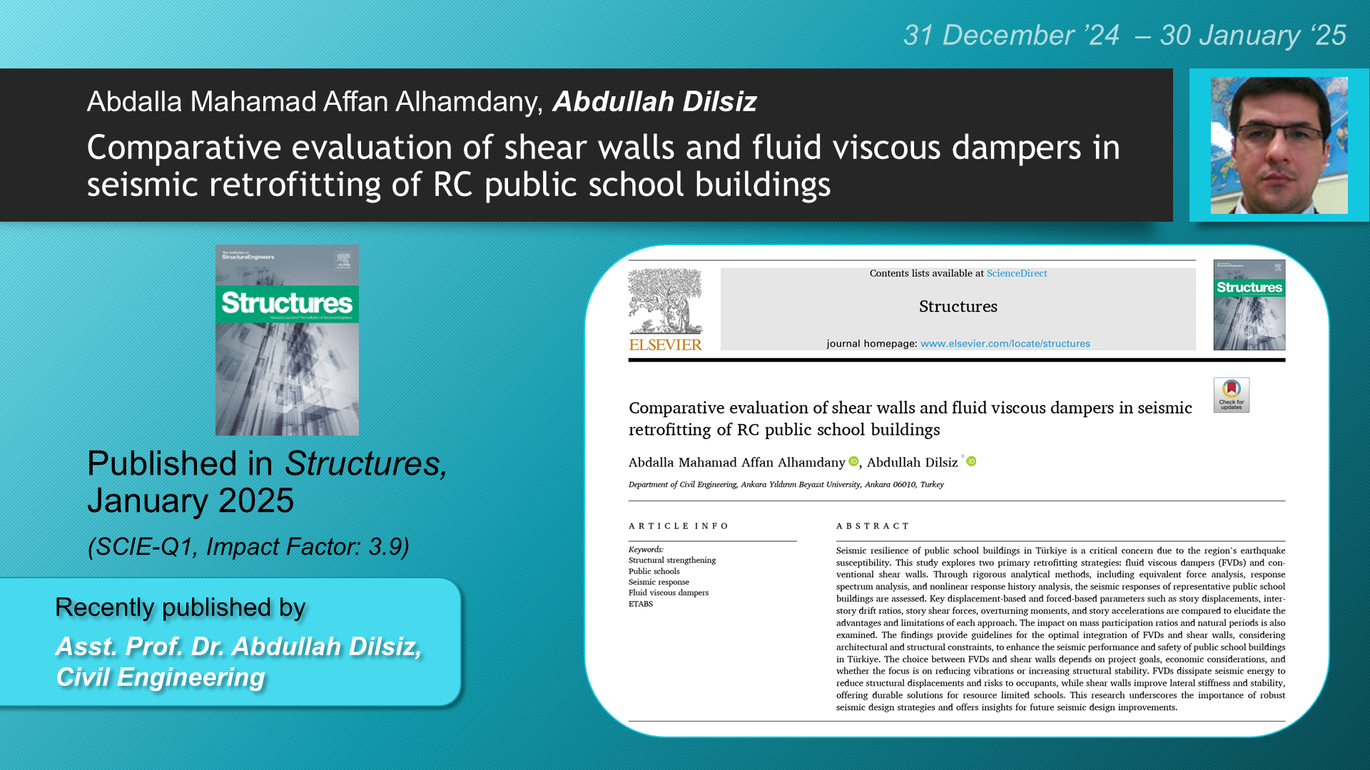Black Sea Journal of Engineering and Science, Cilt 8, Sayı 1, Sayfalar 234-242 Comparative evaluation of shear walls and fluid viscous dampers in seismic retrofitting of RC public school buildings Abdalla Mahamad Affan Alhamdany and Abdullah Dilsiz