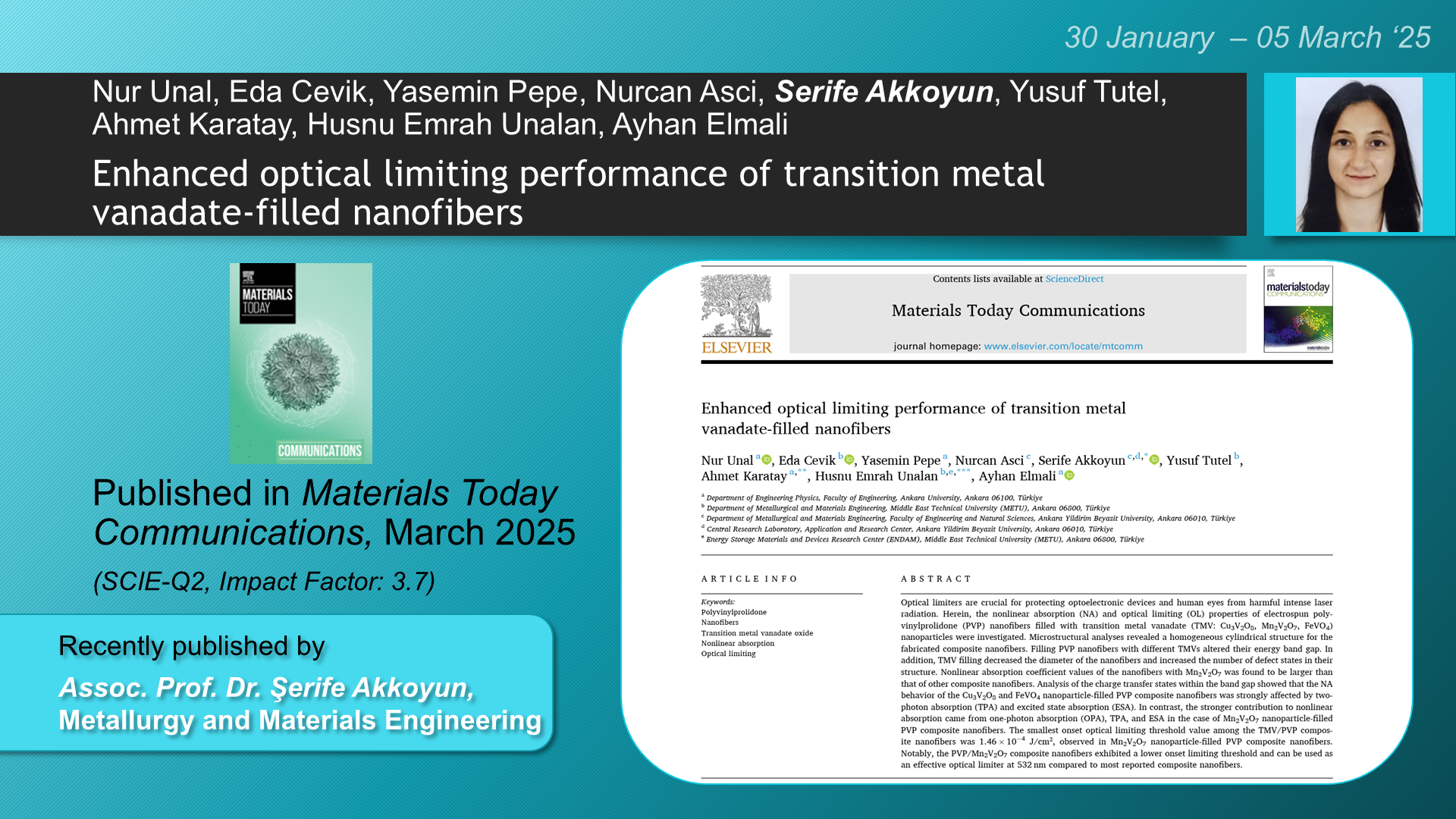 The International Journal of Advanced Manufacturing Technology, Sayfalar 1-27 A Novel Hybrid Nanocomposite of Curcumin, Silver, and Polyaniline in a PMAA–EGDMA Network for Enhanced Electrochemical and Antibacterial Performance Ehsan Sanattalab and Nimet Yıldırım‐Tirgil and Elif T Aksun‐Tümerkan