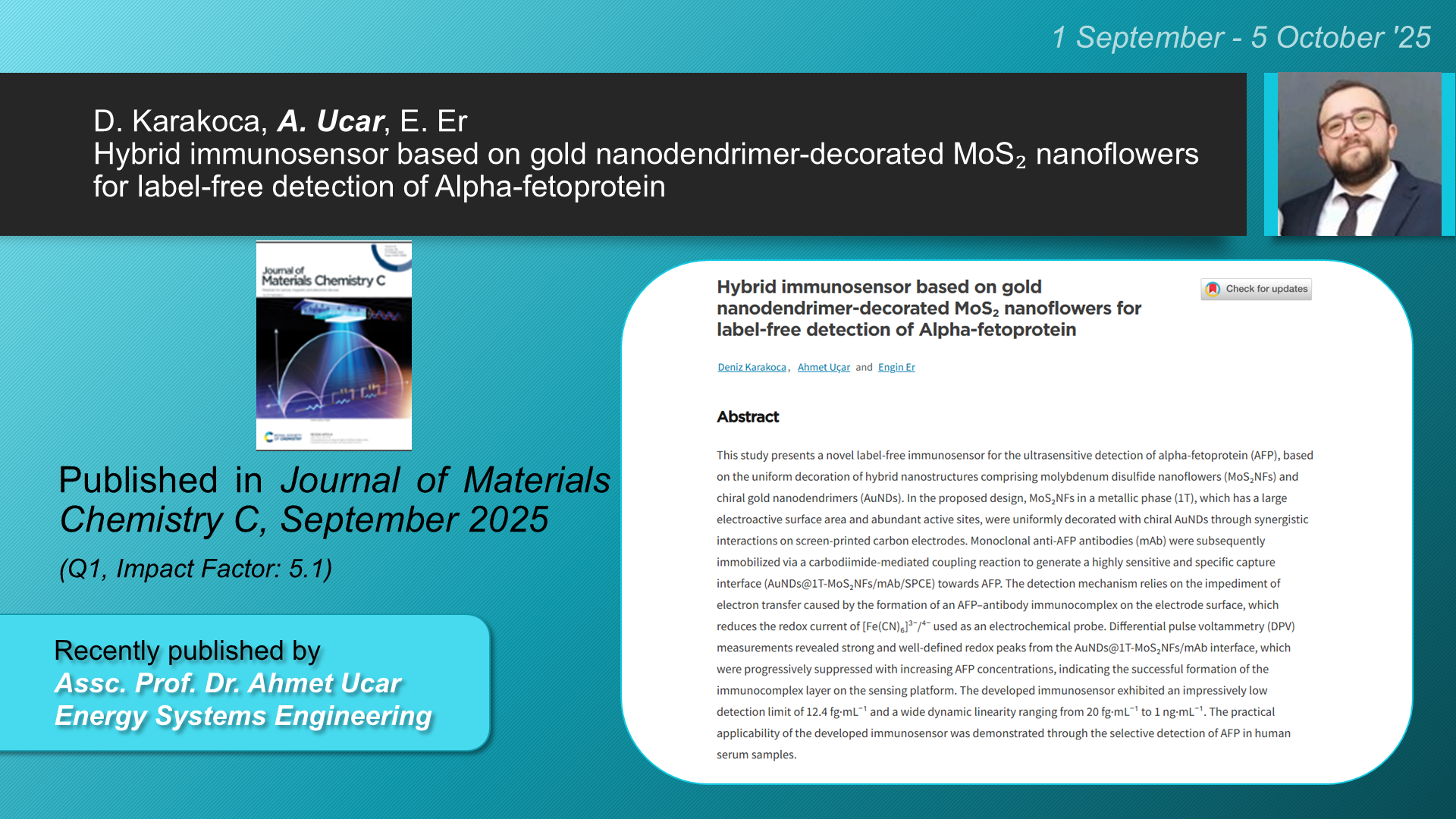Water, Cilt 17, Sayı 18, Sayfalar 2673 Hybrid immunosensor based on gold nanodendrimer-decorated MoS₂ nanoflowers for label-free detection of Alpha-fetoprotein Deniz Karakoca and Ahmet Uçar and Engin Er