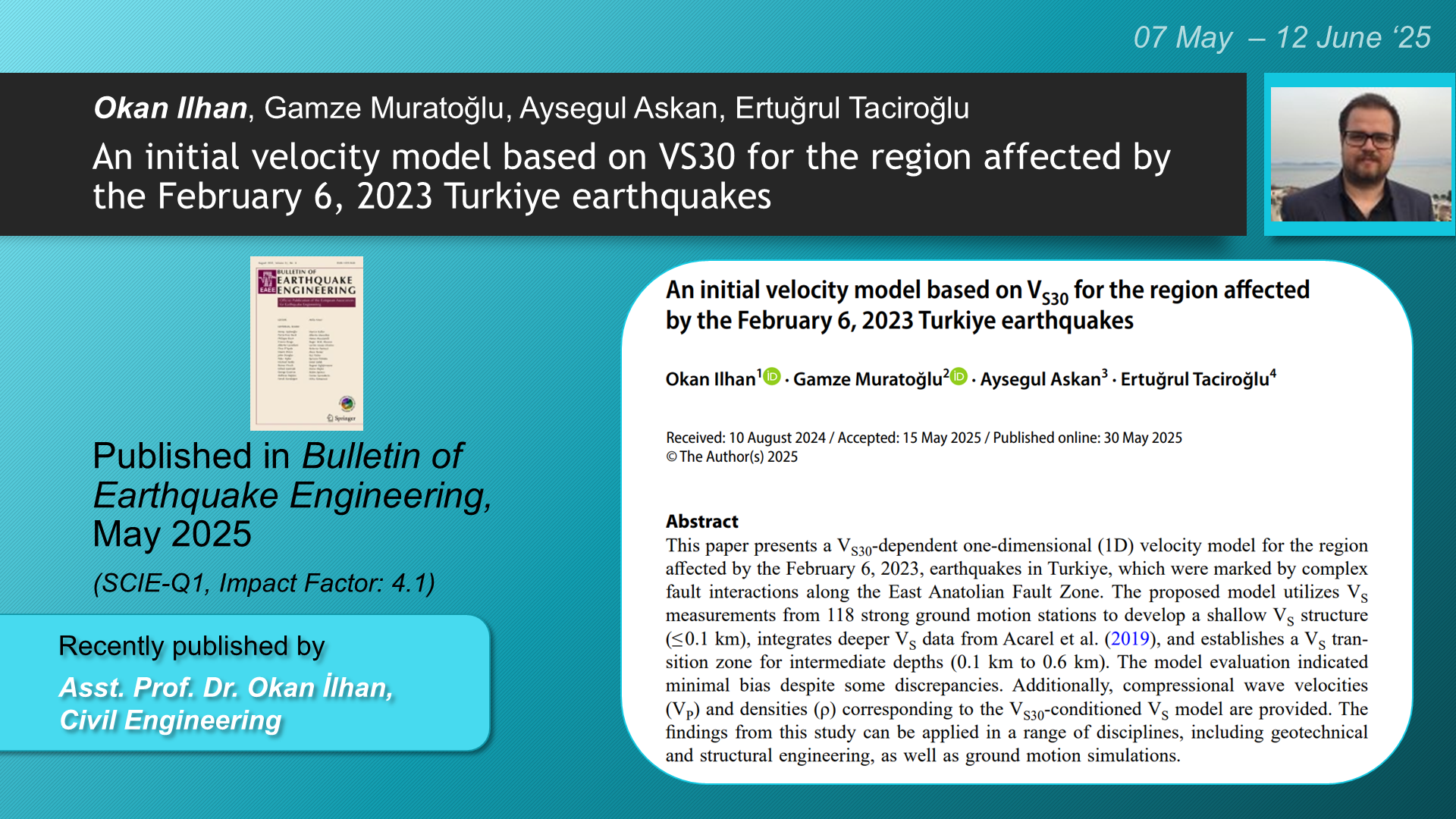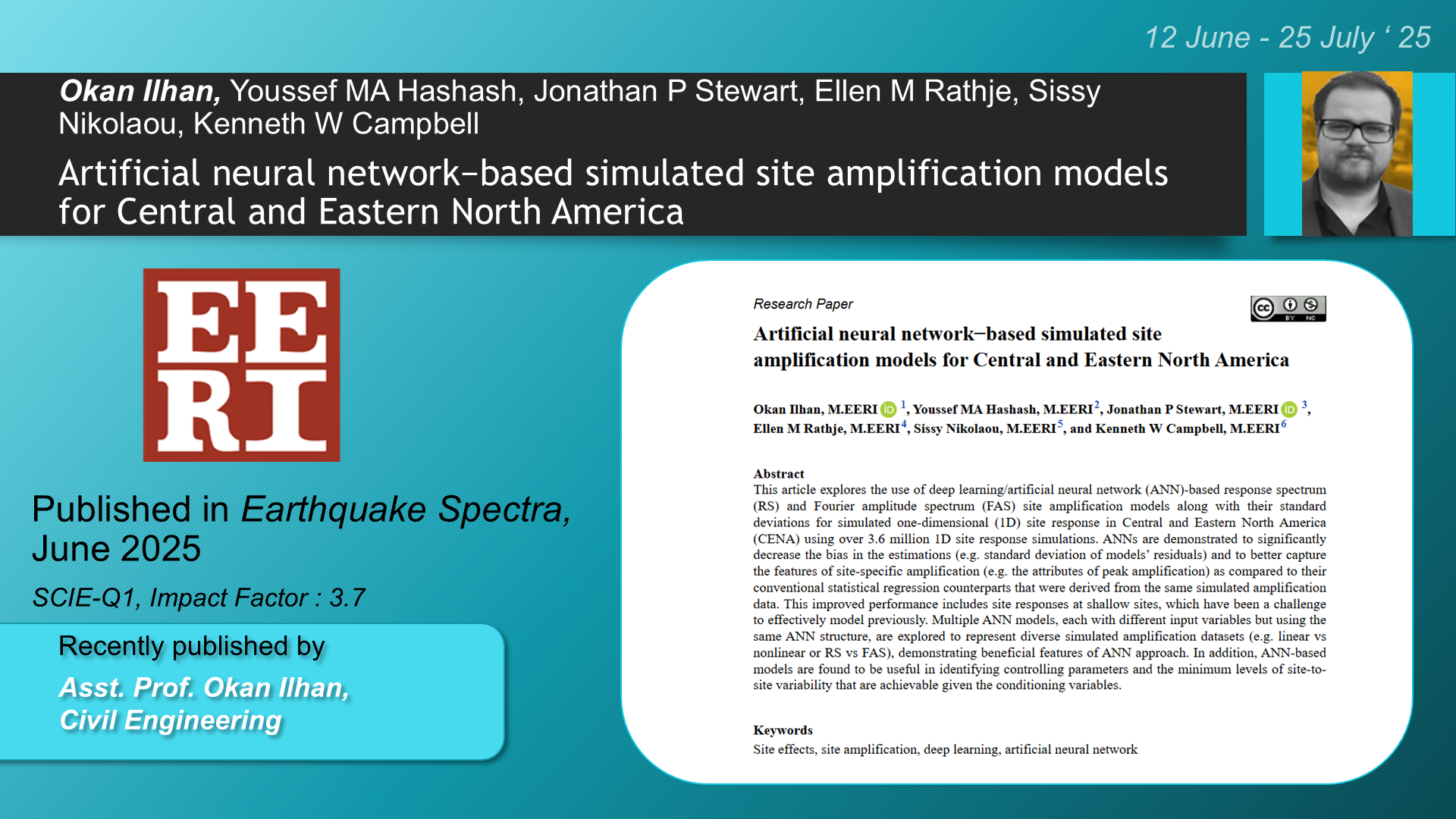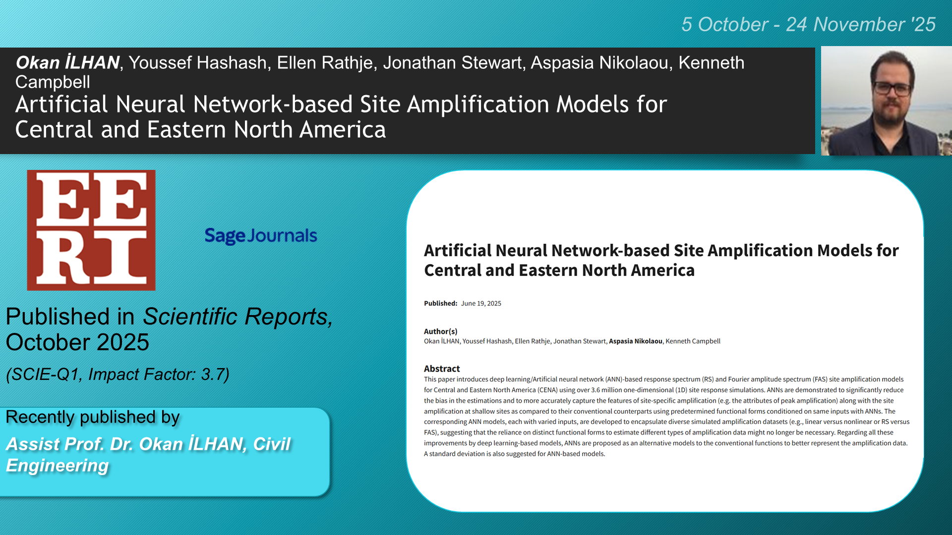 arXiv preprint arXiv:2510.21063 Artificial Neural Network-based Site Amplification Models for Central and Eastern North America Okan İLHAN and Youssef Hashash and Ellen Rathje and Jonathan Stewart and Aspasia Nikolaou and Kenneth Campbell Baseflow index estimation using digital and minima methods in the Büyük Menderes Basin Merve Nur Güngör and Arzu Ozkaya