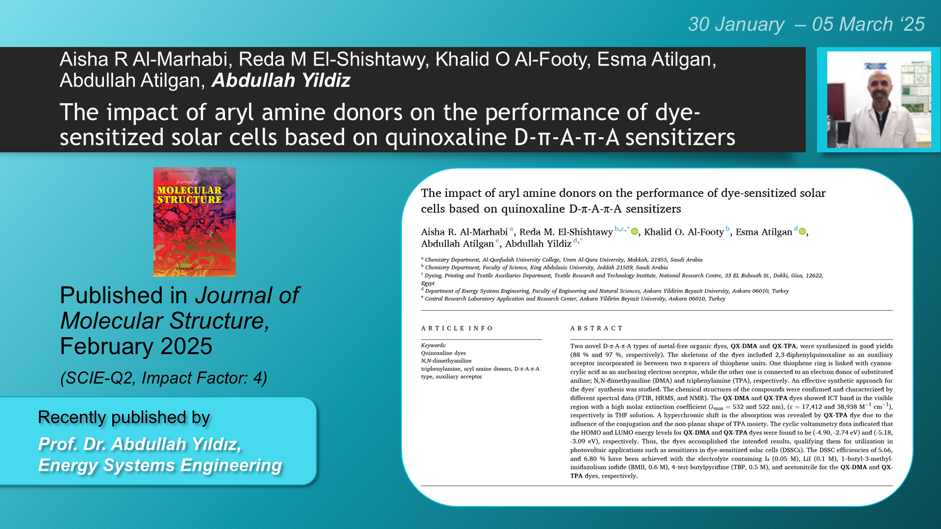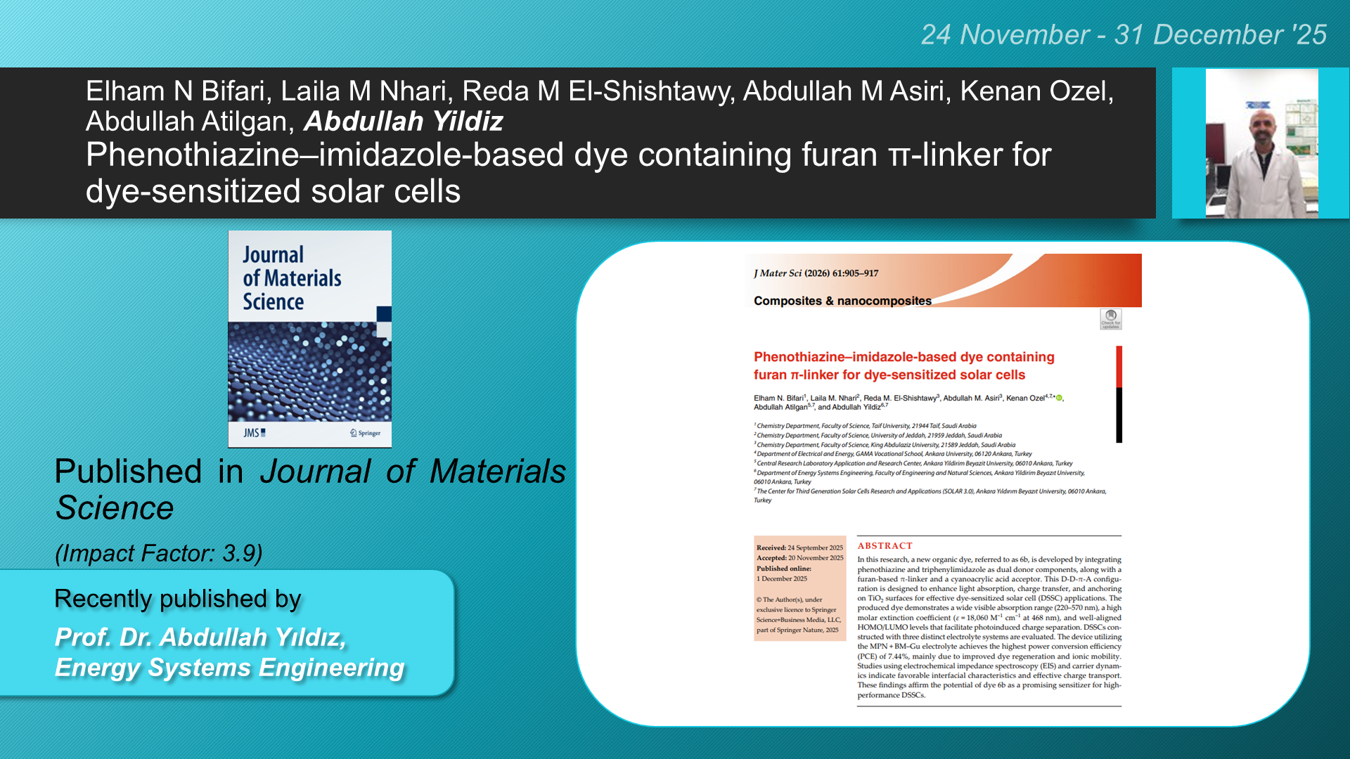 Babylonian Journal of Networking, Cilt 2025, Sayfalar 175-184 Phenothiazine–imidazole-based dye containing furan π-linker for dye-sensitized solar cells Elham N Bifari and Laila M Nhari and Reda M El-Shishtawy and Abdullah M Asiri and Kenan Ozel and Abdullah Atilgan and Abdullah Yildiz