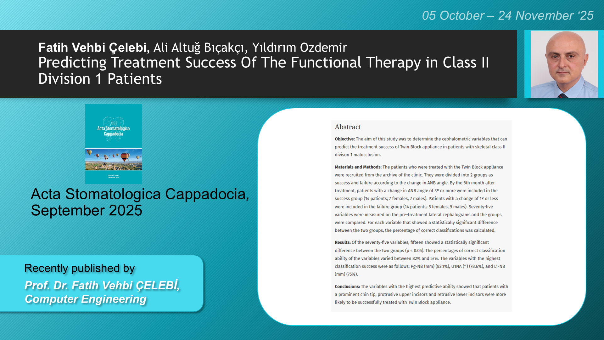 Electronics, Cilt 14, Sayı 22, Sayfalar 4395 Predicting Treatment Success Of The Functional Therapy in Class II Division 1 Patients Fatih Çelebi and Ali Altug Bicakci and Yildirim Ozdemir