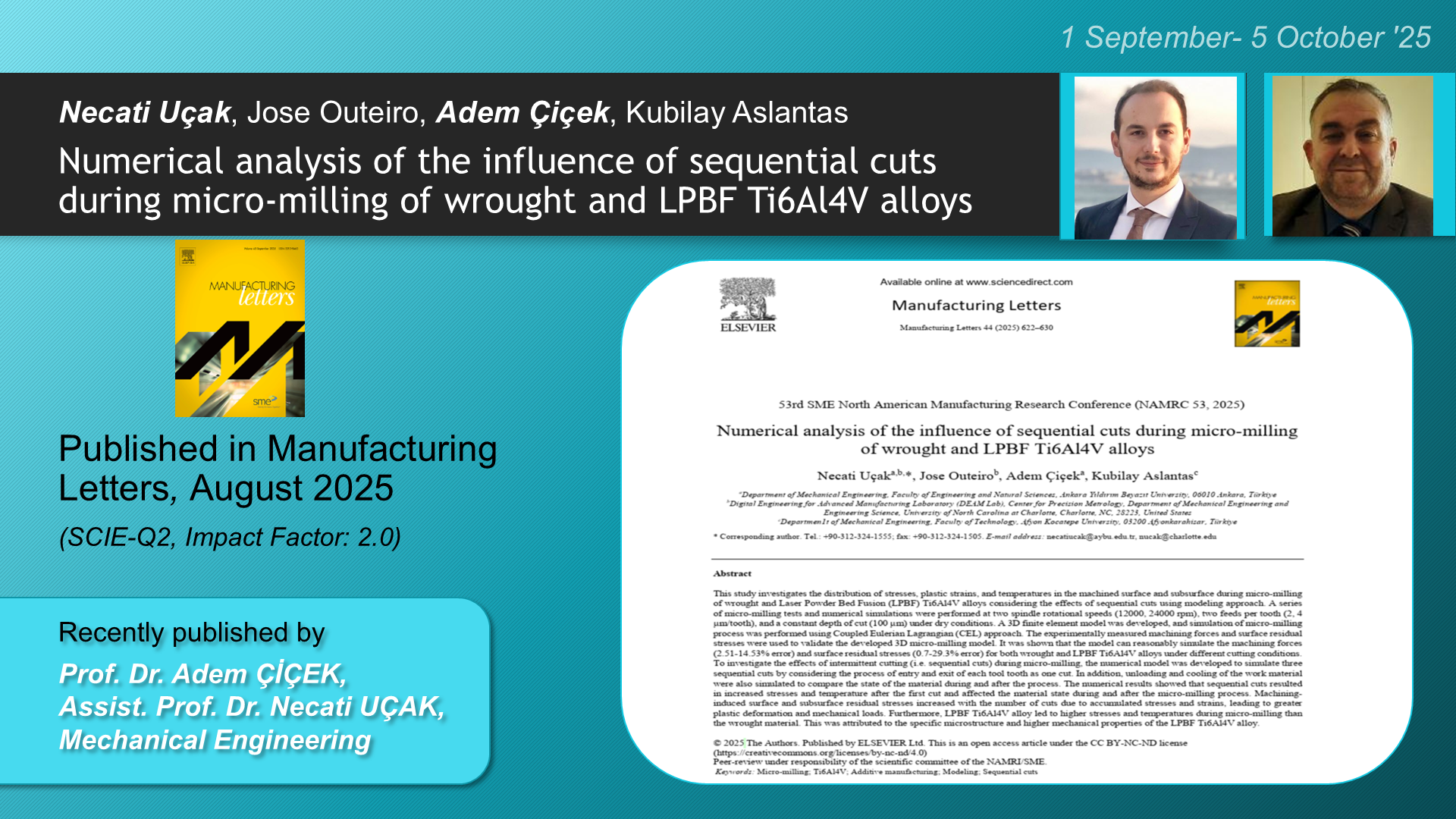 Proceedings of the Institution of Mechanical Engineers, Part E: Journal of Process Mechanical Engineering, Sayfalar 09544089251376718 Numerical analysis of the influence of sequential cuts during micro-milling of wrought and LPBF Ti6Al4V alloys Necati Uçak and Jose Outeiro and Adem Çiçek and Kubilay Aslantas