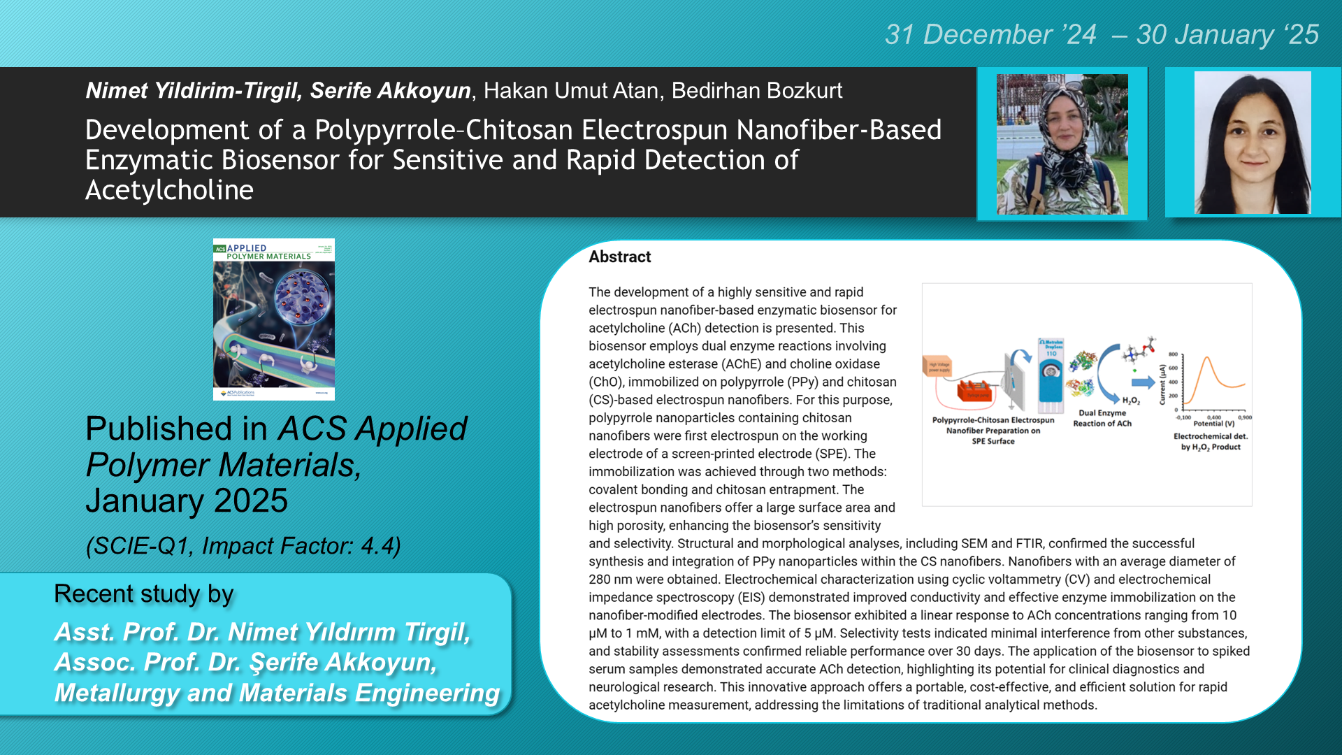 International Journal of Hydrogen Energy Towards high-performance dye-sensitized solar cells by utilizing reduced graphene oxide-based composites as potential alternatives to conventional electrodes: A review Edigar Muchuweni and Edwin T Mombeshora and Cosmas M Muiva and T Stephen Sathiaraj and Abdullah Yildiz and Diego Pugliese Development of a Polypyrrole–Chitosan Electrospun Nanofiber-Based Enzymatic Biosensor for Sensitive and Rapid Detection of Acetylcholine Nimet Yildirim-Tirgil and Serife Akkoyun and Hakan Umut Atan and Bedirhan Bozkurt