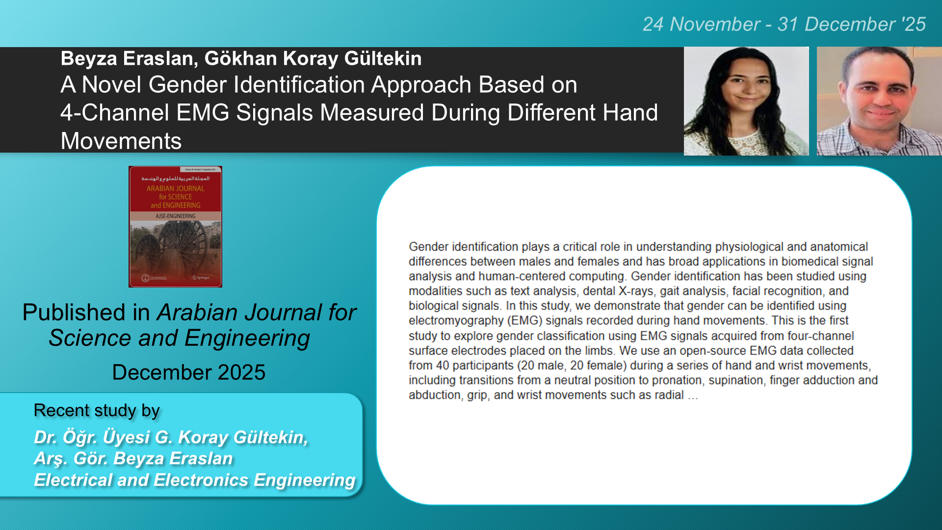 Journal of Engineering Science and Technology, Cilt 20, Sayı 6, Sayfalar 2154 - 2171 A Novel Gender Identification Approach Based on 4-Channel EMG Signals Measured During Different Hand Movements Beyza Eraslan and Gokhan Koray Gultekın