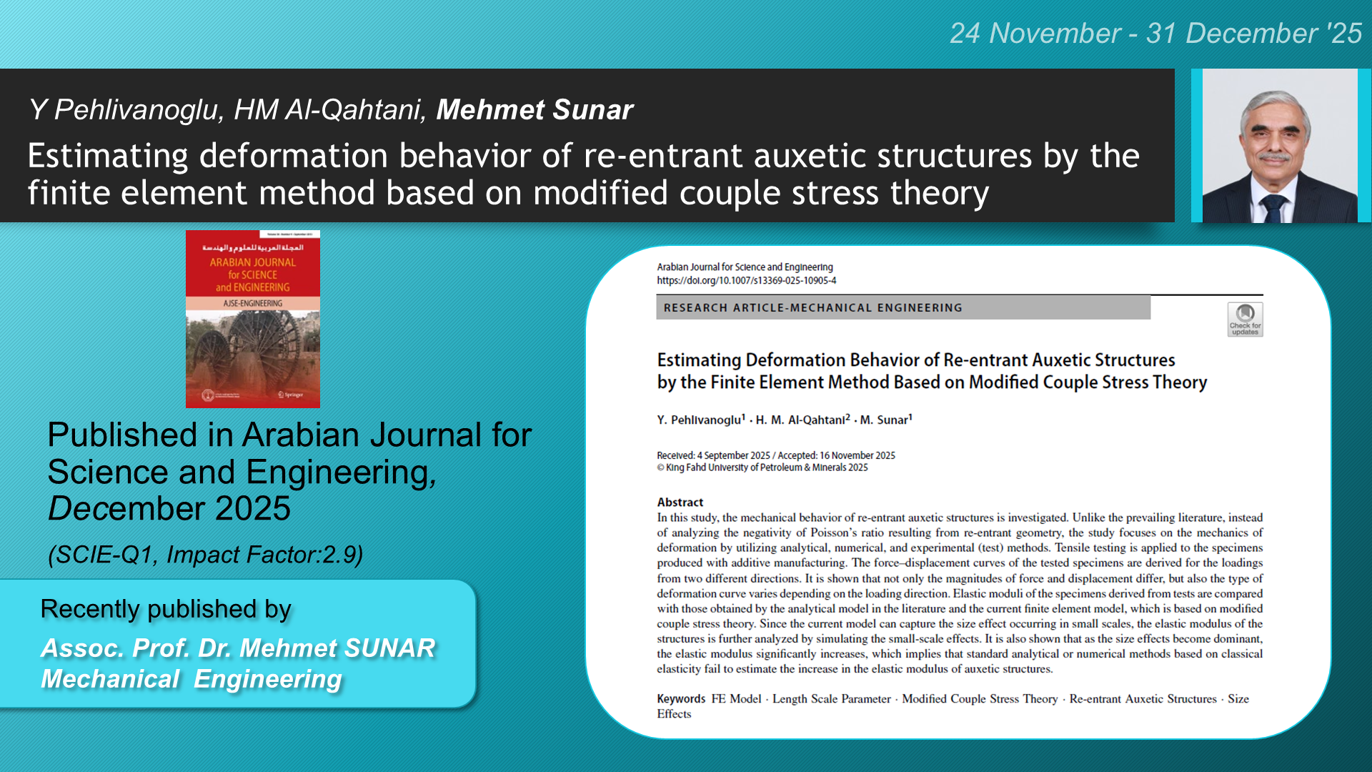 Composites Part A: Applied Science and Manufacturing, Sayfalar 109492 Estimating Deformation Behavior of Re-entrant Auxetic Structures by the Finite Element Method Based on Modified Couple Stress Theory Y Pehlivanoglu and HM Al-Qahtani and MEHMET Sunar