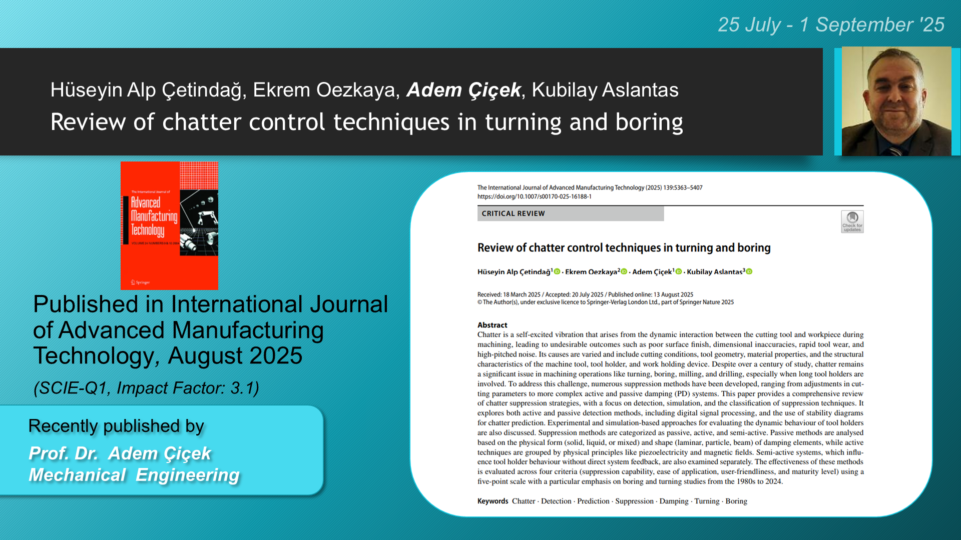 Journal of Cleaner Production, Cilt 524, Sayfalar 146473 The effects of tool geometry on surface integrity in hard turning of ball bearing inner raceways Gökhan Sağır and Adem Çiçek and Ozan Müştak and Yasin Sarikavak