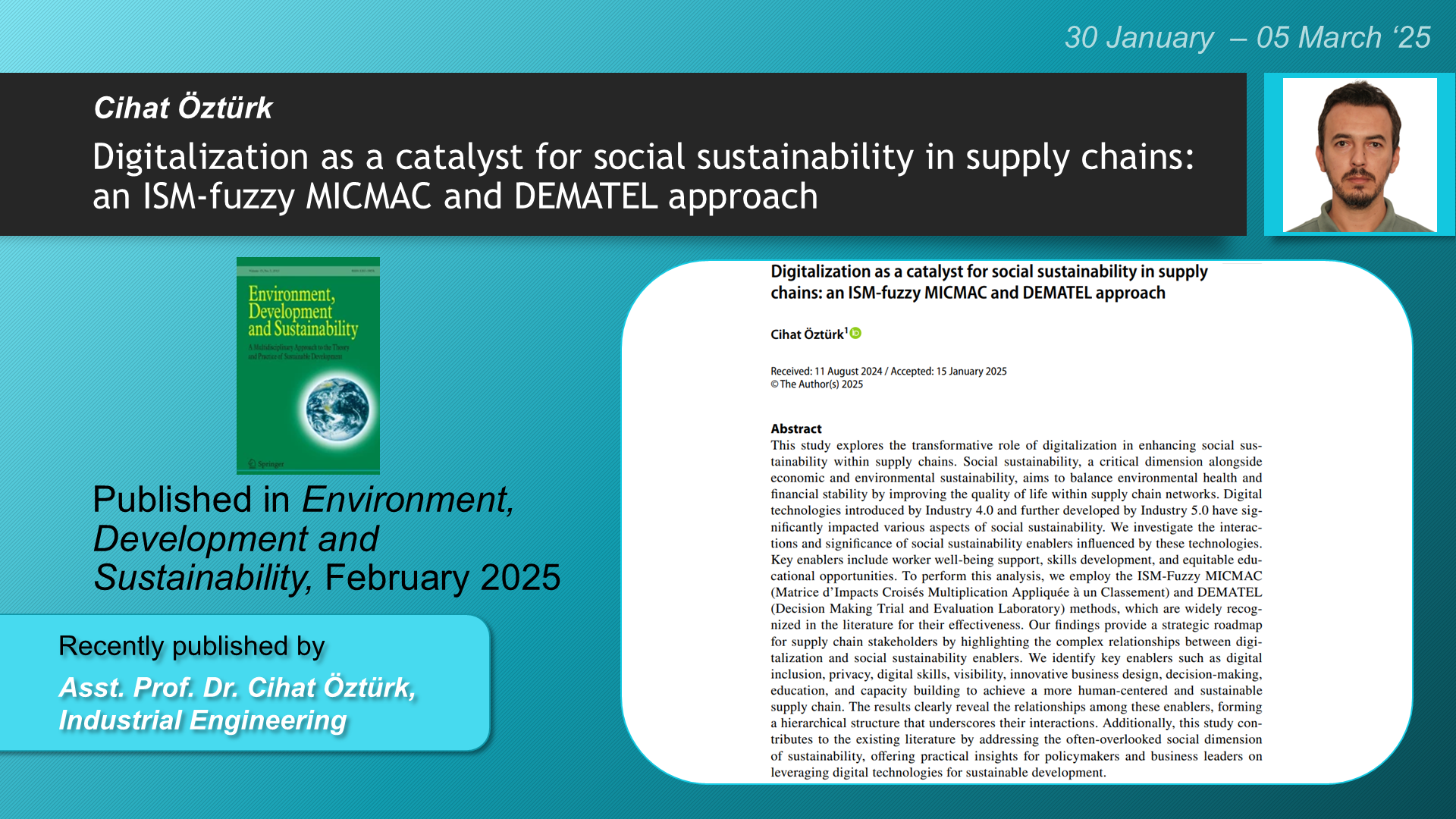 Soft Computing, Sayfalar 1-14 A conceptual framework for blockchain‐based sustainable supply chain and evaluating implementation barriers: A case of the tea supply chain Sachin Kumar Mangla and Yiğit Kazançoğlu and Abdullah Yıldızbaşı and Cihat Öztürk and Ahmet Çalık