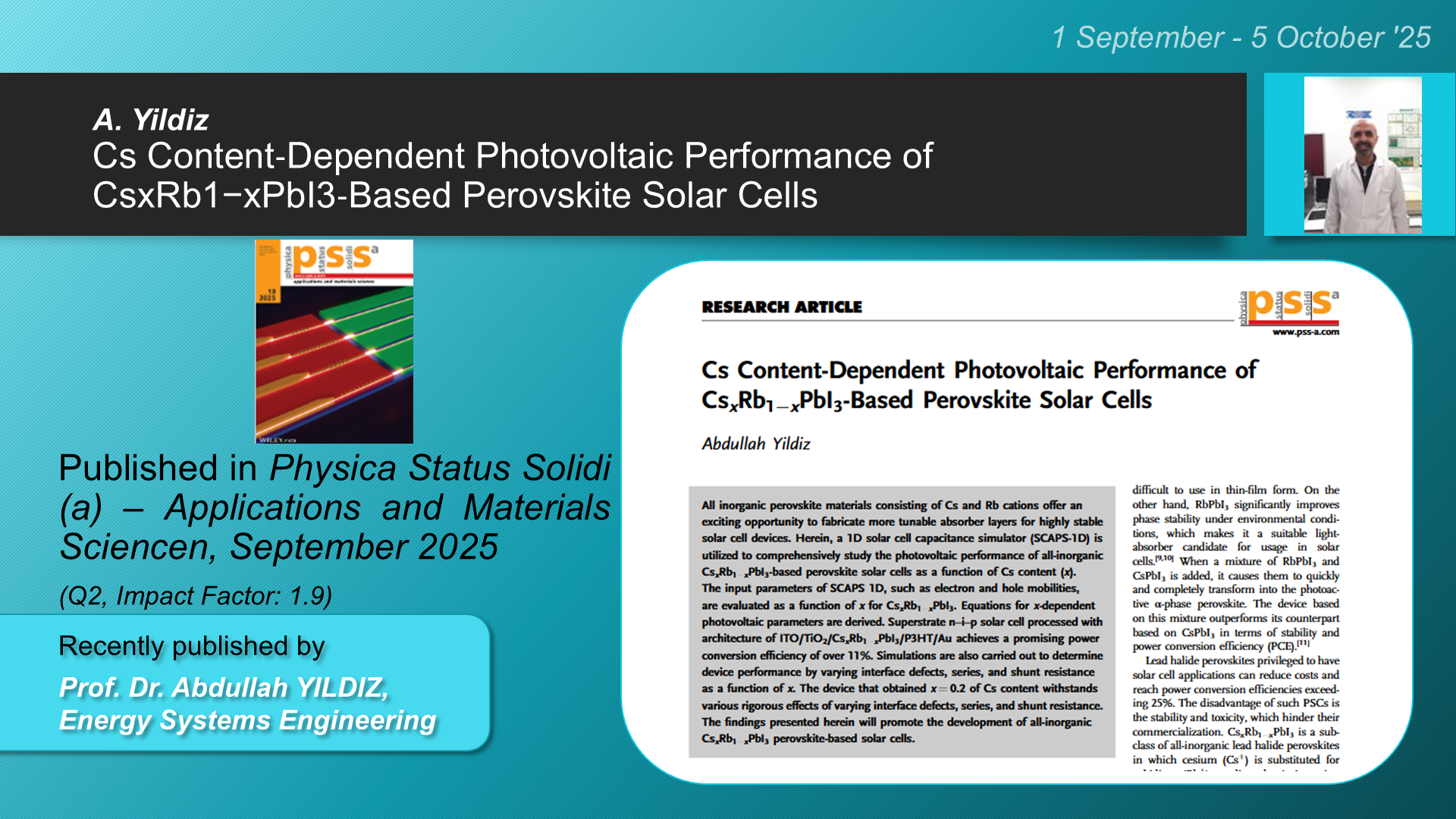 5th International Conference on Frontiers in Academic Research Cs Content‐Dependent Photovoltaic Performance of CsxRb1−xPbI3‐Based Perovskite Solar Cells Abdullah Yildiz