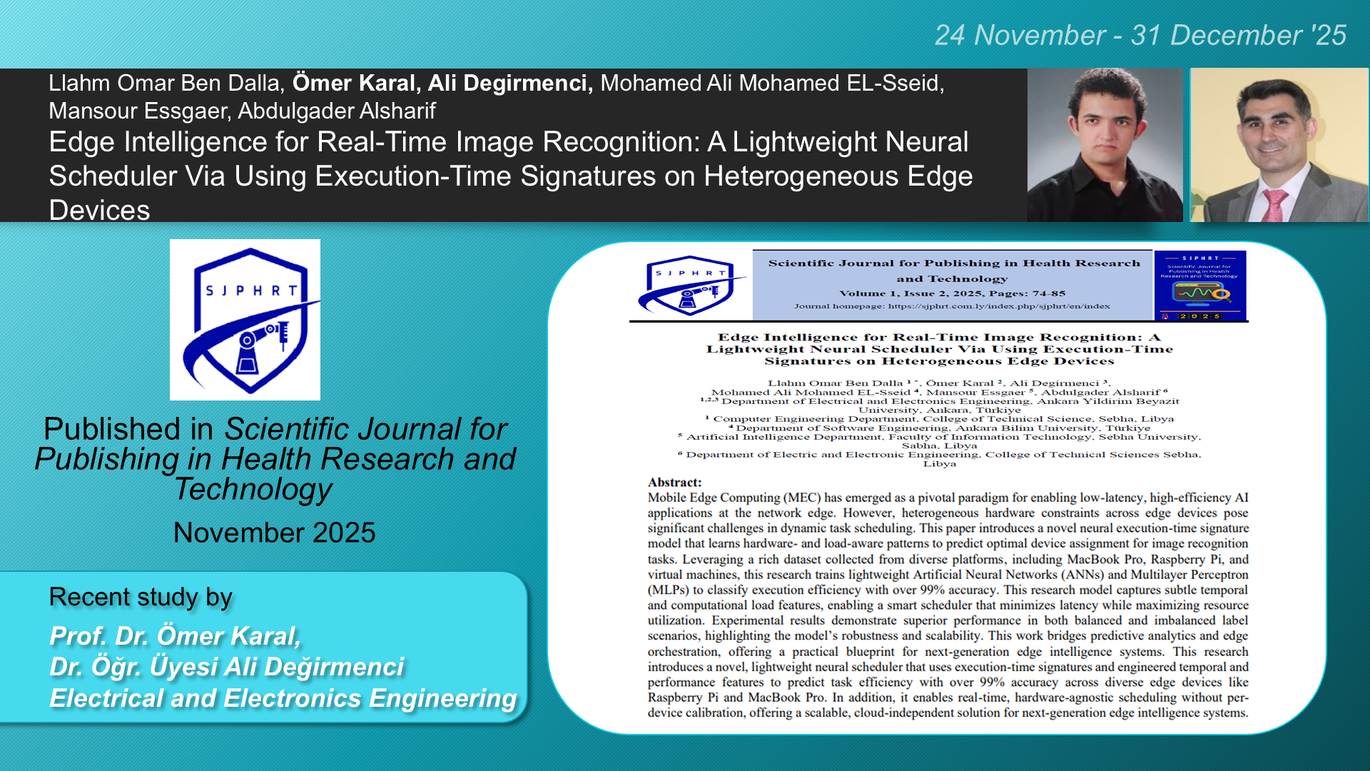 Afyon Kocatepe Üniversitesi Fen Ve Mühendislik Bilimleri Dergisi, Cilt 25, Sayı 6, Sayfalar 1372-1385 Edge Intelligence for Real-Time Image Recognition: A Lightweight Neural Scheduler Via Using Execution-Time Signatures on Heterogeneous Edge Devices Llahm Omar Ben Dalla and Ömer Karal and Ali Degirmenci and Mohamed Ali Mohamed EL-Sseid and Mansour Essgaer and Abdulgader Alsharif