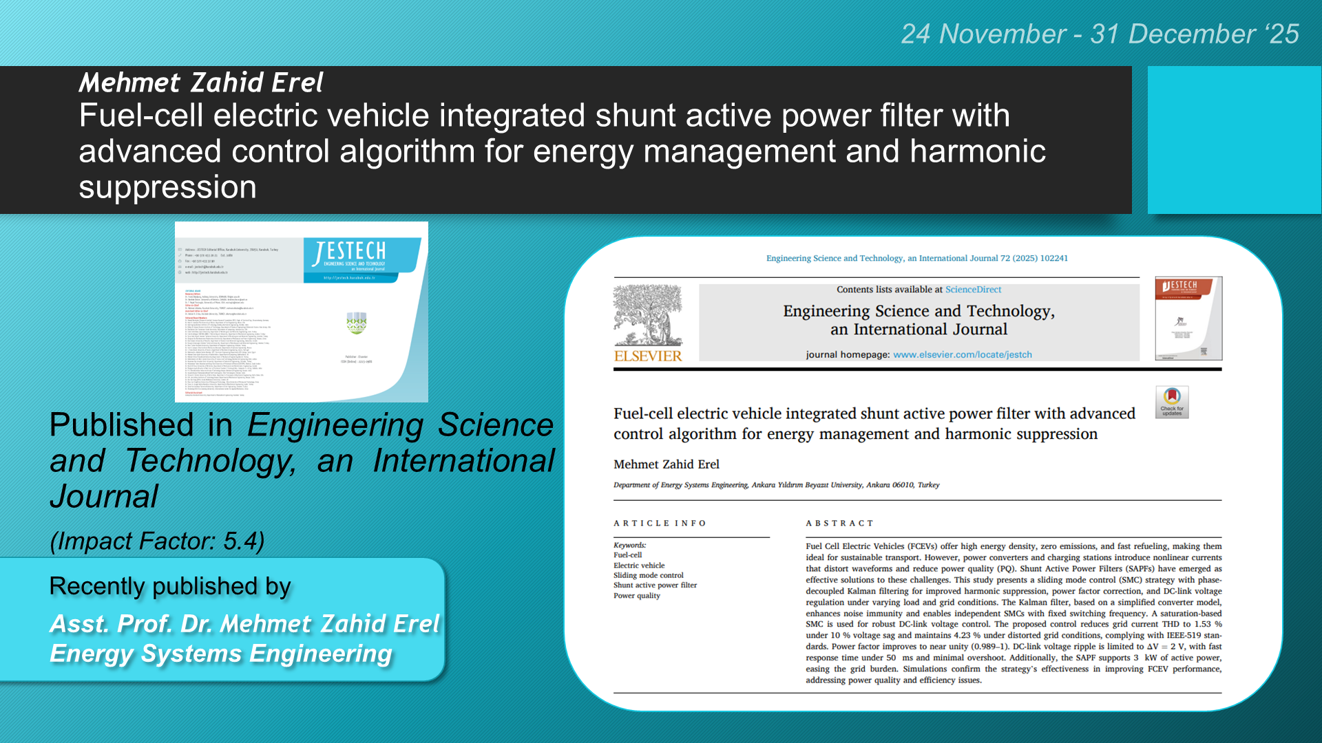 International Journal of Pavement Engineering, Cilt 26, Sayı 1, Sayfalar 2591296 Fuel-cell electric vehicle integrated shunt active power filter with advanced control algorithm for energy management and harmonic suppression Mehmet Zahid Erel