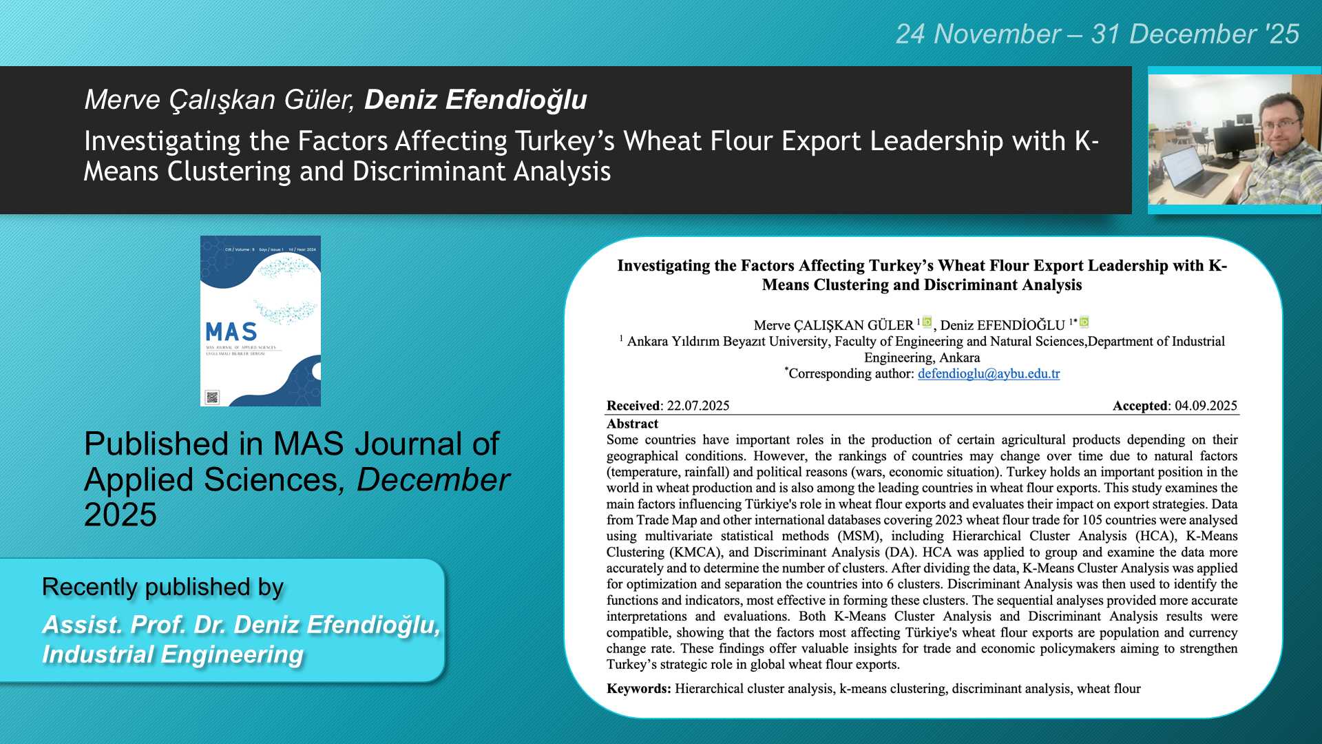 Investigating the Factors Affecting Turkey’s Wheat Flour Export Leadership with K-Means Clustering and Discriminant Analysis Merve ÇALIŞKAN GÜLER and Deniz EFENDİOĞLU