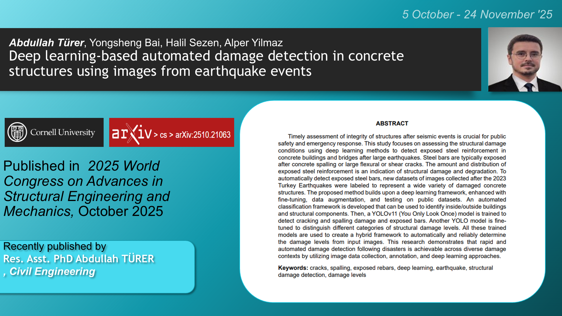 Archives of Civil and Mechanical Engineering, Cilt 26, Sayı 1, Sayfalar 2 Deep learning-based automated damage detection in concrete structures using images from earthquake events Abdullah Turer and Yongsheng Bai and Halil Sezen and Alper Yilmaz