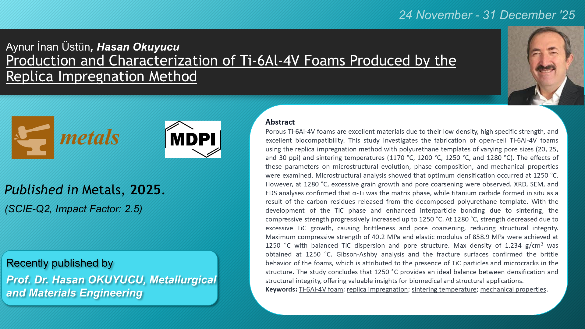Journal of the Indian Chemical Society, Sayfalar 102326 Replika emdirme yöntemi ile Ti-6Al-4V metalik köpüklerin üretim parametrelerinin optimizasyonu ve karakterizasyonu Aynur İnan Üstün and Hasan Okuyucu