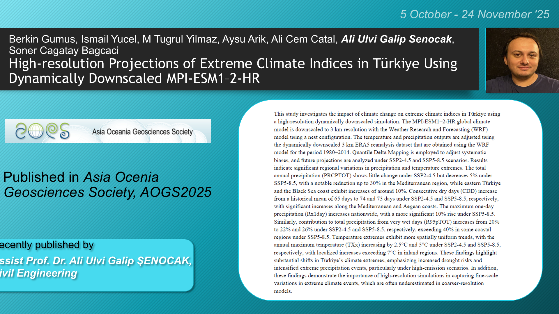 Asia Ocenia Geosciences Society, AOGS2025 High-resolution Projections of Extreme Climate Indices in Türkiye Using Dynamically Downscaled MPI-ESM1–2-HR Berkin Gumus and Ismail Yucel and M Tugrul Yilmaz and Aysu Arik and Ali Cem Catal and Ali Ulvi Galip Senocak and Soner Cagatay Bagcaci