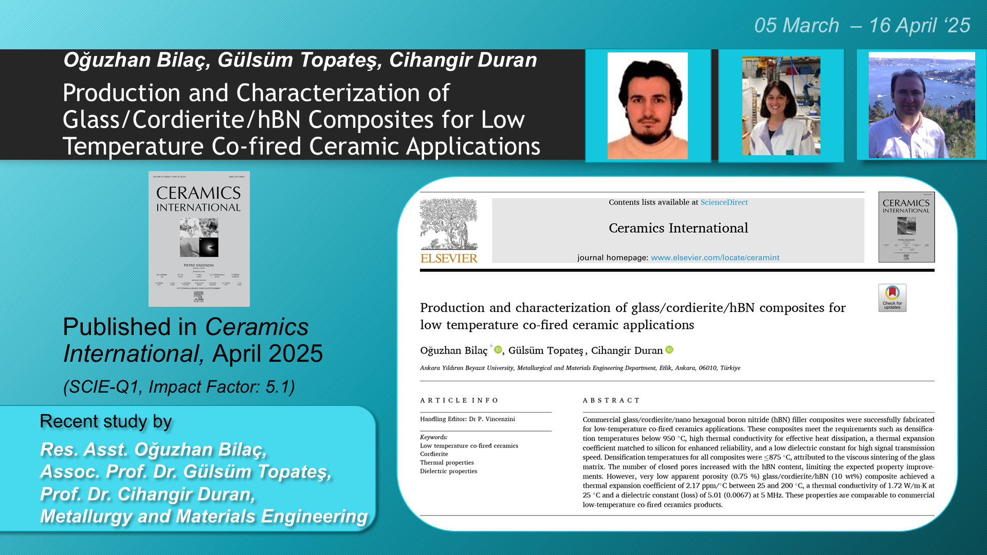 Additive Manufacturing Conference 2025, Sayfalar 100 Alkaline Water Electrolysis: A Review on Technological Progress, Market Dynamics, and Environmental Implications Alperen Çankaya and Ahmed Emin Kılıç and Yüksel Kaplan Effect of Mixing Methods on the Fabrication and Microstructural Properties of BaTiO3-Based Ceramic Nanocomposites Reinforced with Graphene Nanoplatelets Kubilay Ozdemir and Hakan Ates and Mete Bakir