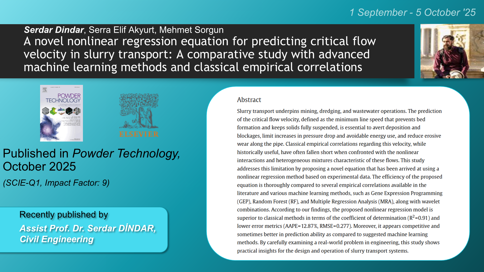 Water Supply, Sayfalar ws2025082 A novel nonlinear regression equation for predicting critical flow velocity in slurry transport: A comparative study with advanced machine learning methods and classical empirical correlations Serdar Dindar and Serra Elif Akyurt and Mehmet Sorgun