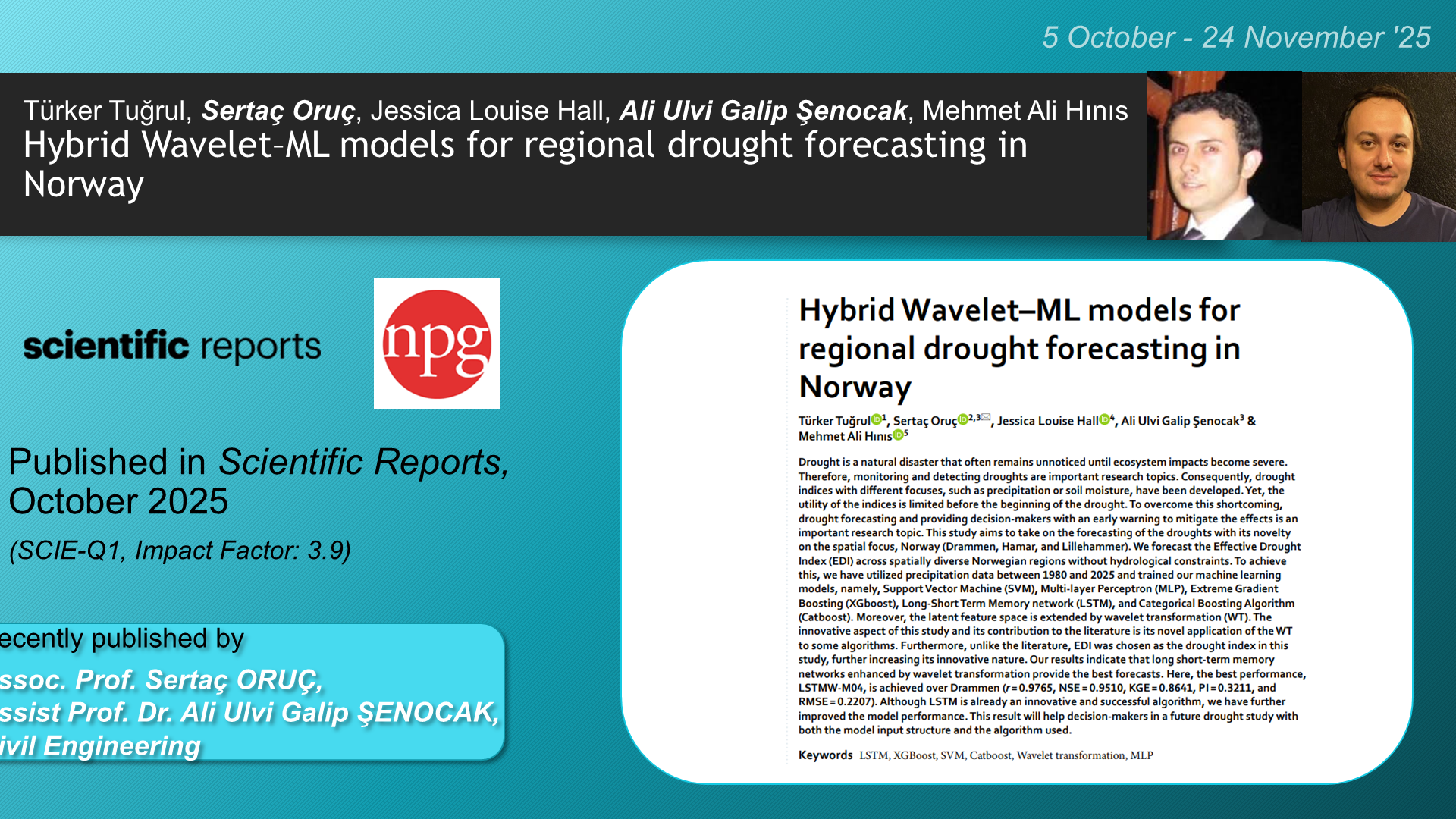 Sustainable Water Resources Management, Cilt 11, Sayı 6, Sayfalar 129 Hybrid Wavelet–ML models for regional drought forecasting in Norway Türker Tuğrul and Sertaç Oruç and Jessica Louise Hall and Ali Ulvi Galip Şenocak and Mehmet Ali Hınıs