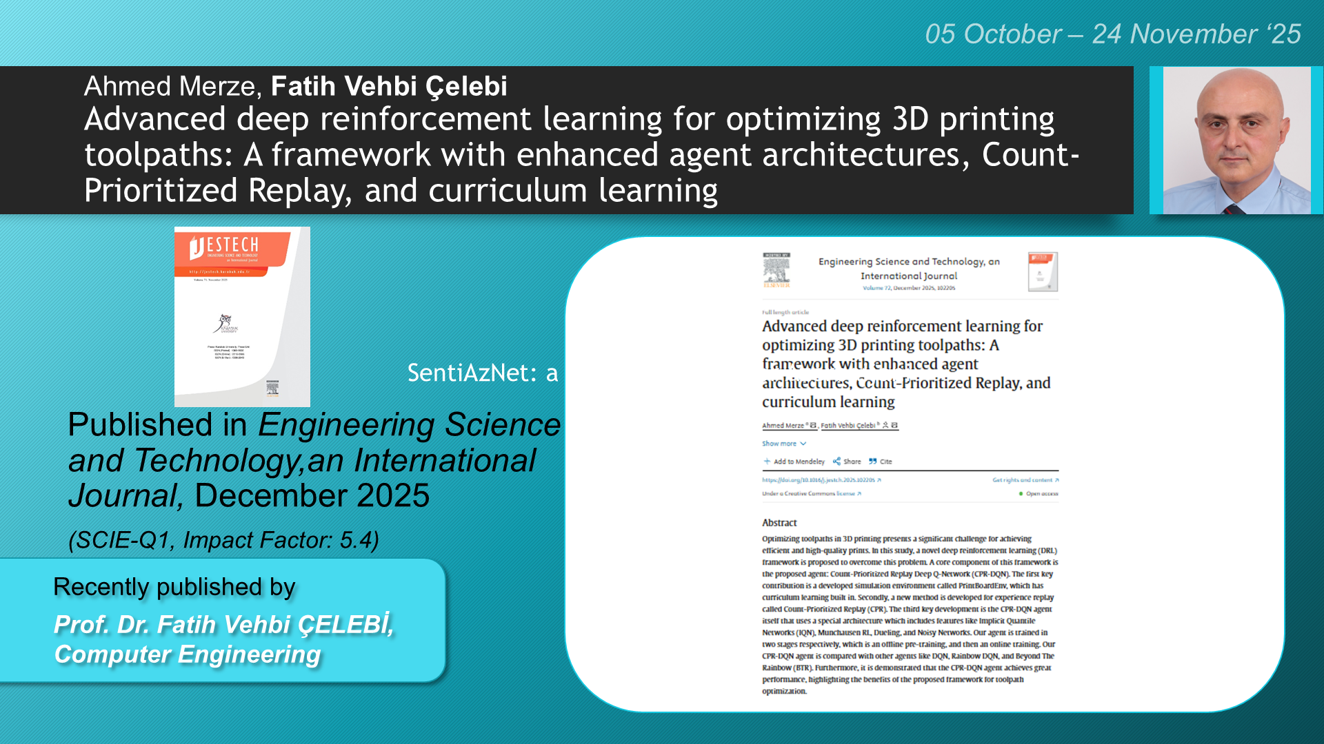 Acta Stomatologica Cappadocia, Cilt 5, Sayı 2 Advanced deep reinforcement learning for optimizing 3D printing toolpaths: A framework with enhanced agent architectures, Count-Prioritized Replay, and curriculum learning Ahmed Merze and Fatih Vehbi Çelebi