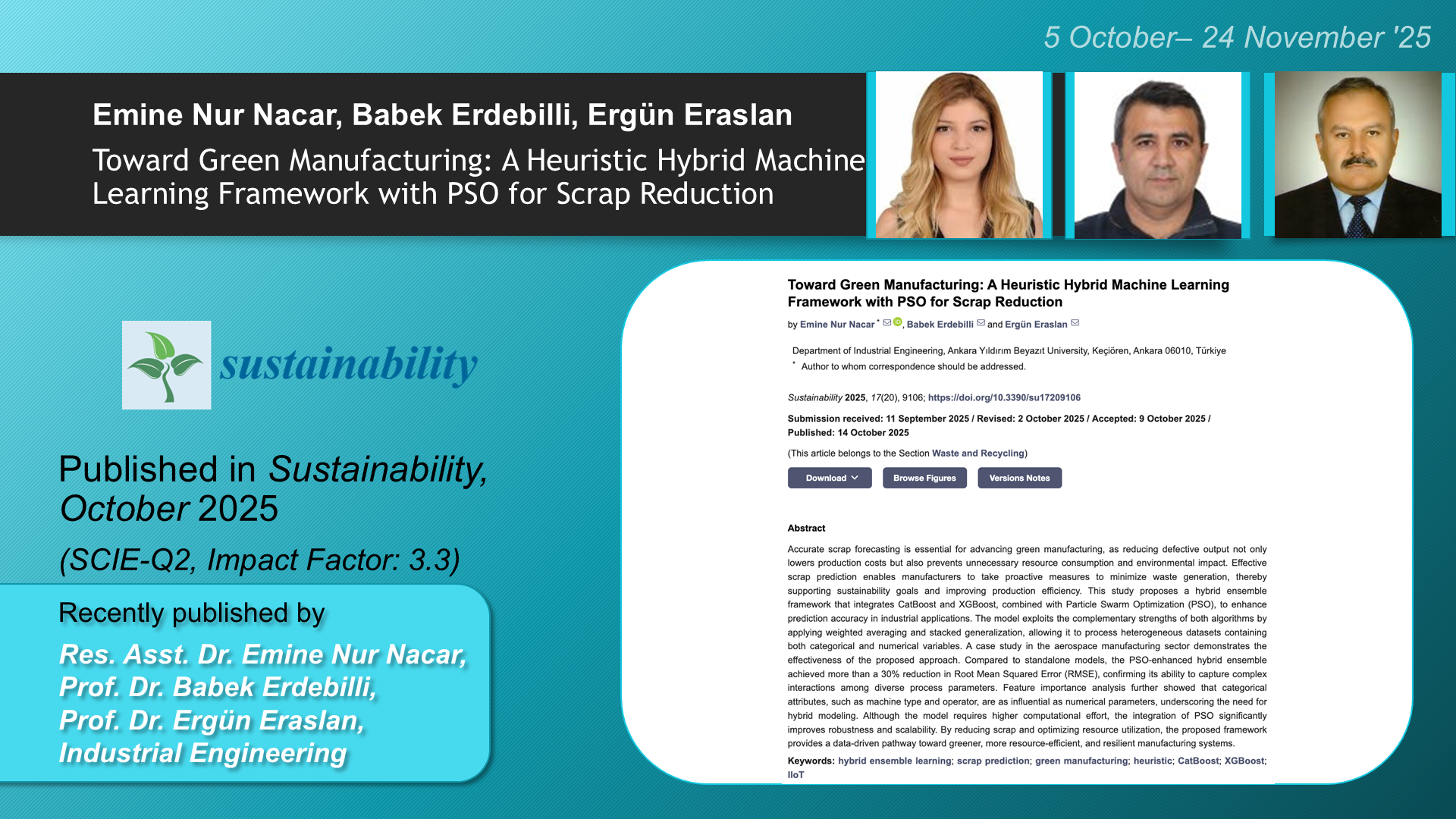 Transactions of the Institute of Measurement and Control, Sayfalar 01423312251376232 Toward Green Manufacturing: A Heuristic Hybrid Machine Learning Framework with PSO for Scrap Reduction Emine Nur Nacar and Babek Erdebilli and Ergün Eraslan