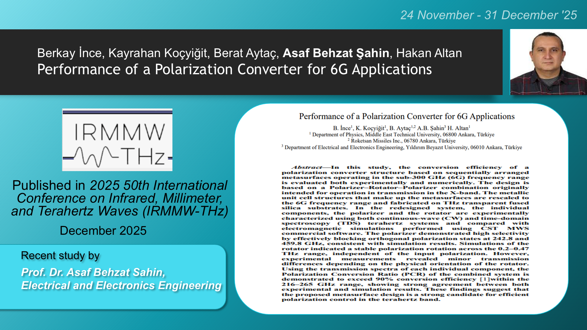 Artificial Intelligence for Security and Defence Applications III, Cilt 13679, Sayfalar 221-227 Investigation of the polarization conversion efficiency of a metasurface-based converter for THz applications H Altan and B Aytac and B İnce and K Kocyigit and OO Sahin and AB Sahin